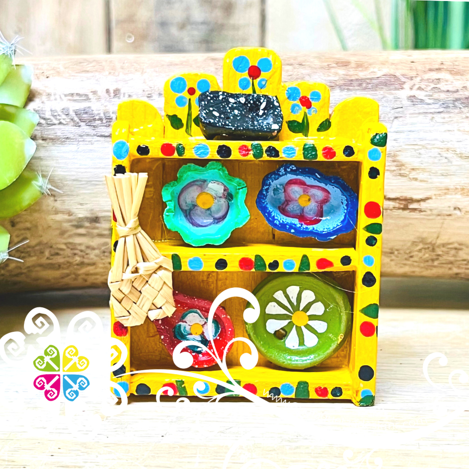 The most beautiful and super cute kitchen trastero for your fridge. Featuring extra minis caly pieces like mugs, plates, trays, petate and more! Handcrafted with love and care just for you.