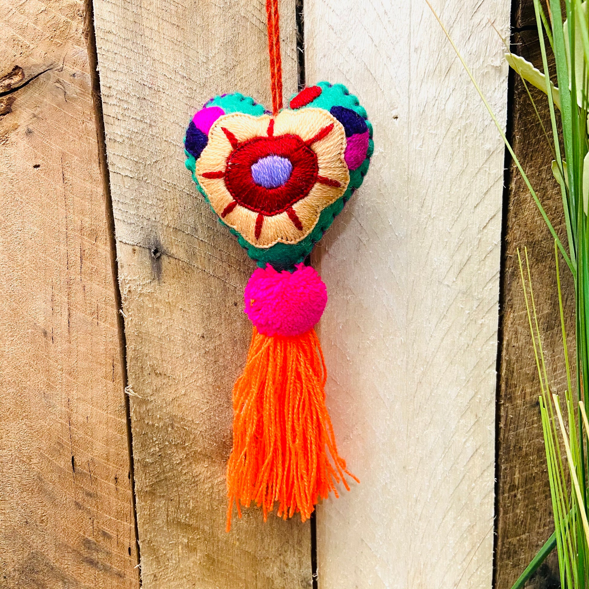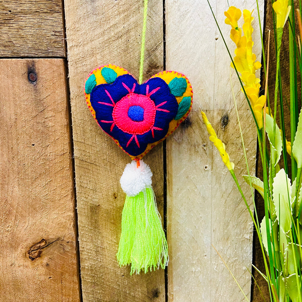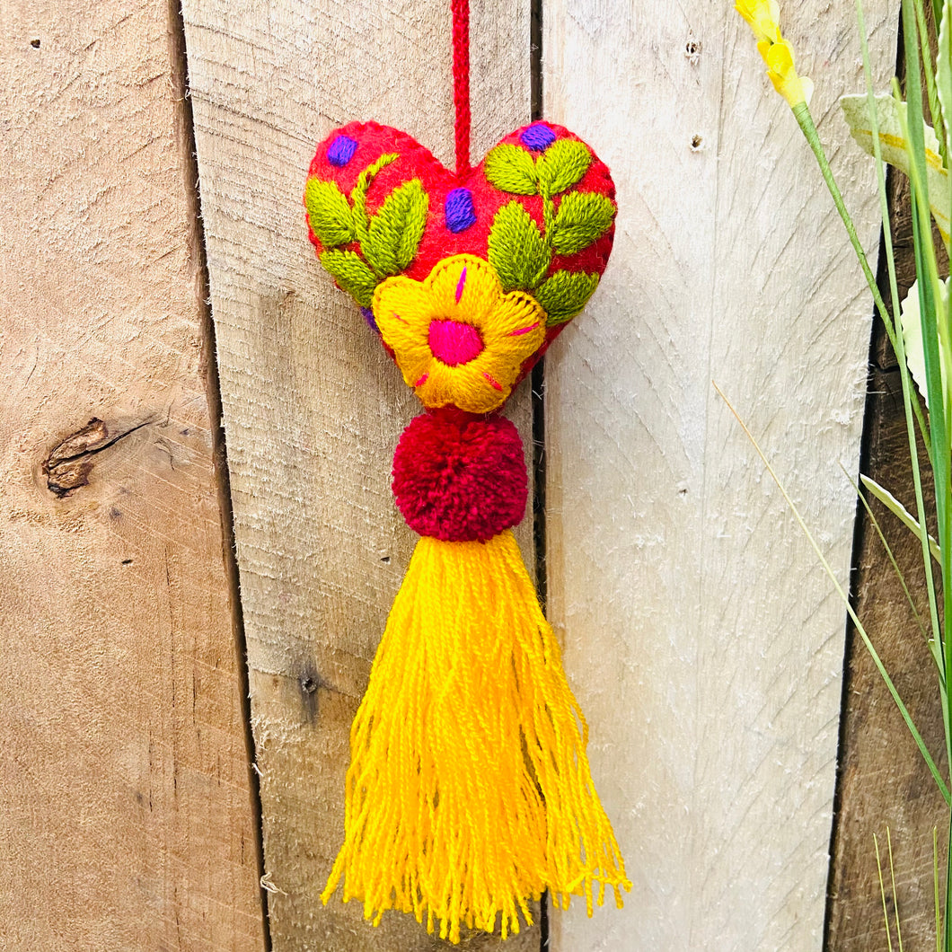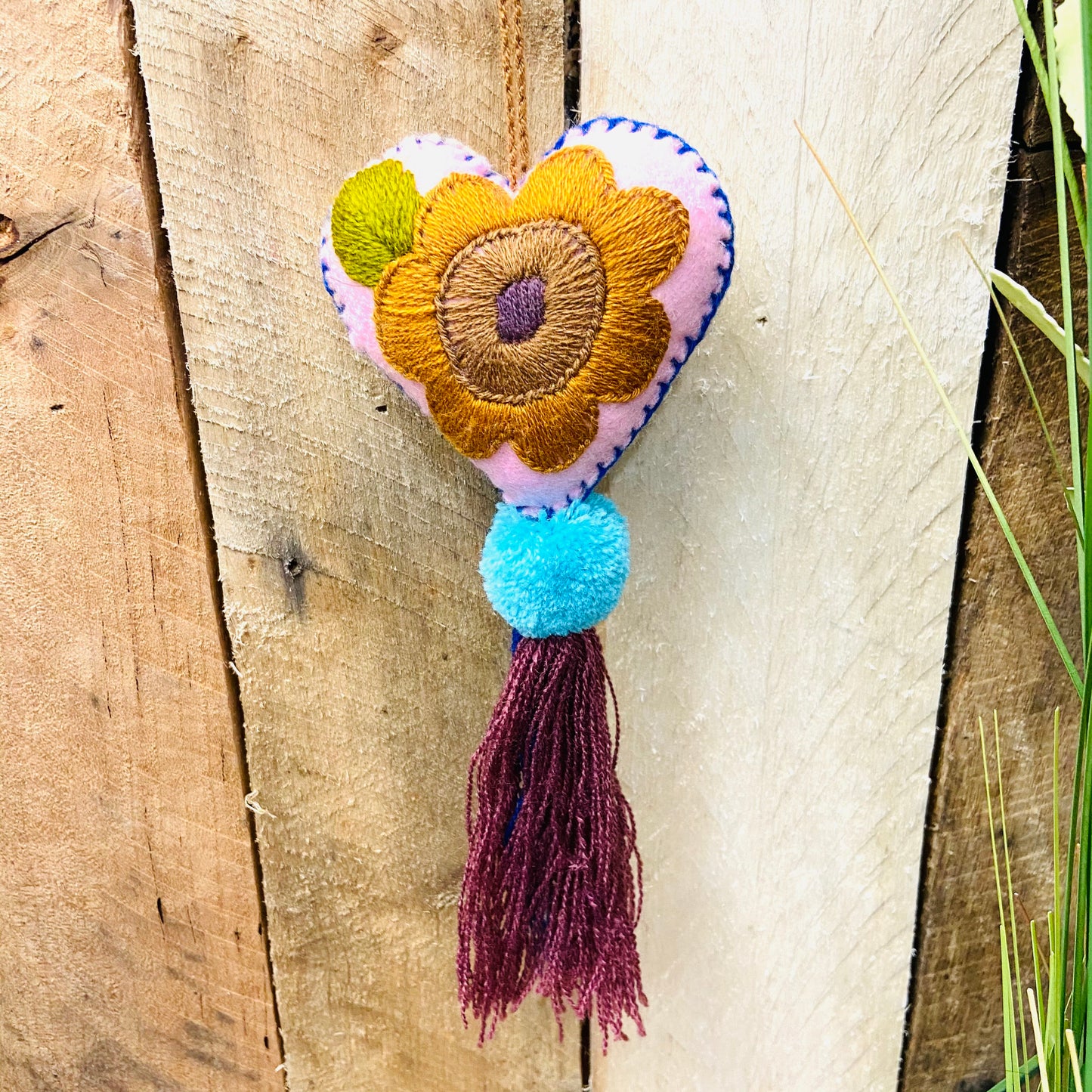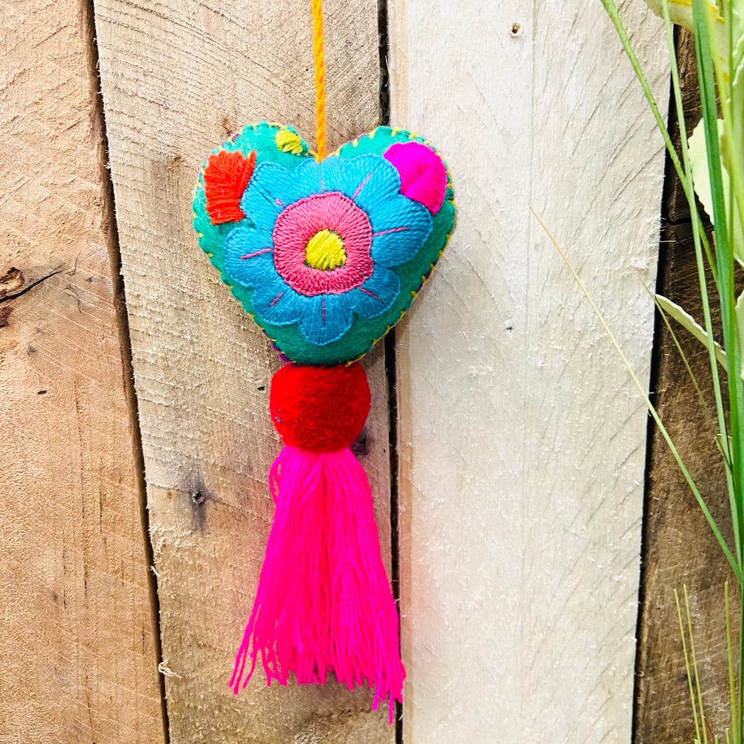 Super cute pom pom! Each piece is saw by hand with care and love by our artisans from Chiapas, Mexico. The colors and designs are inspired on Mexico's culture. Each is truly one of a kind!