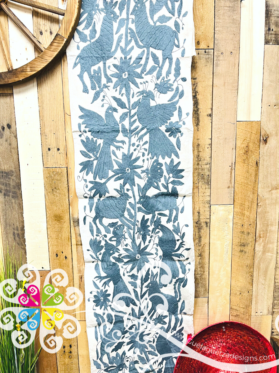 Dark Gray Large Solid Color Otomi Table Runner - Camino de Tenango