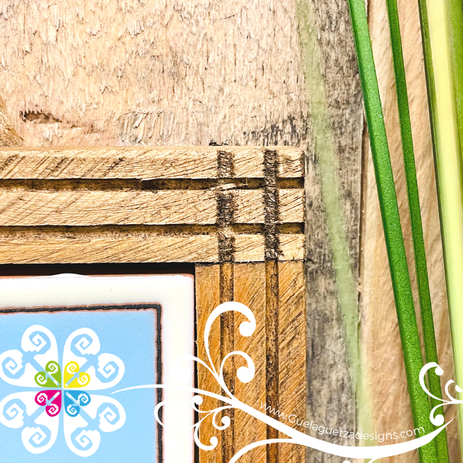 The perfect addition to your home or office for a sip of color. Rustic wood frame with a ceramic tiles inspired from mexican LoteriaMX game. Each piece is handcrafted by talented artisans from Hidalgo, Guanajuato, Mexico.