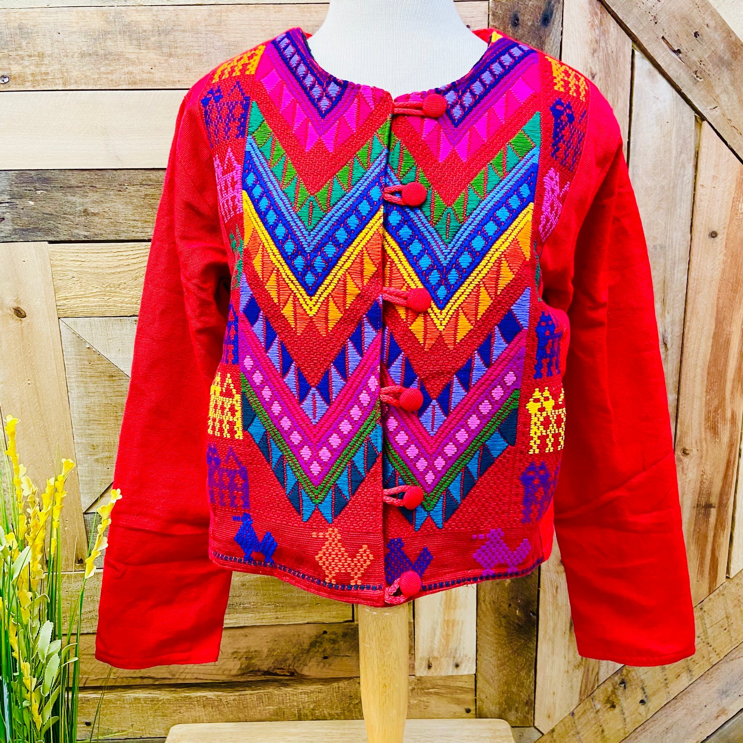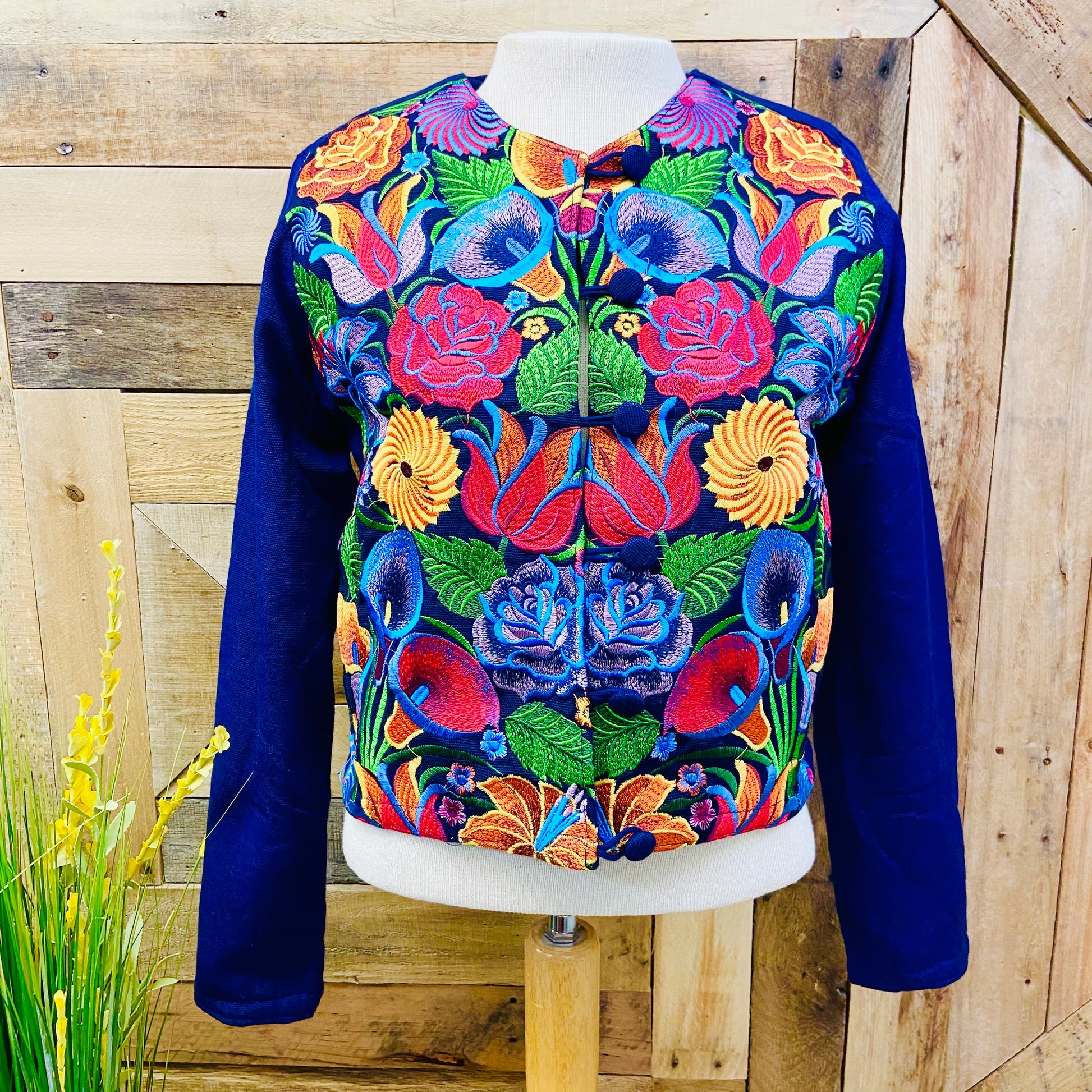 Absolutely gorgeous jacket! You will look just amazing while you are warm. The front features different designs like flower or shapes, all multicolor embroider to bright up your days. The back and sleeves are made from cotton pedal loom fabric. The inside has a second layer with warm fleece and commercial cotton fabric for extra protection to keep you warm during cold winter days.
