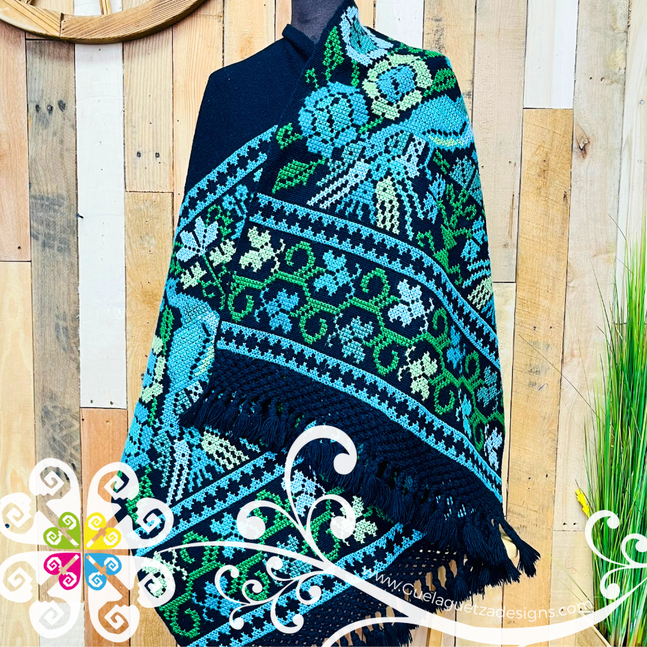 Beautiful one of a kind embroider rebozo. Base is made with plain cotton threads and decorated with hand made cross stitch embroider with forms of unique shapes, flowers and birds representing Mexico's flora and fauna.