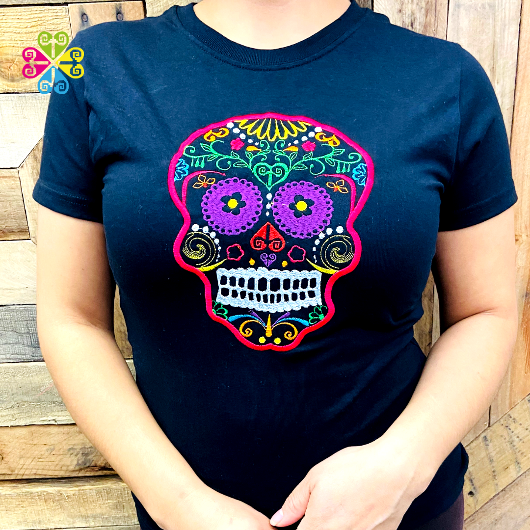 Embroider Women Tee- Sugar Skull