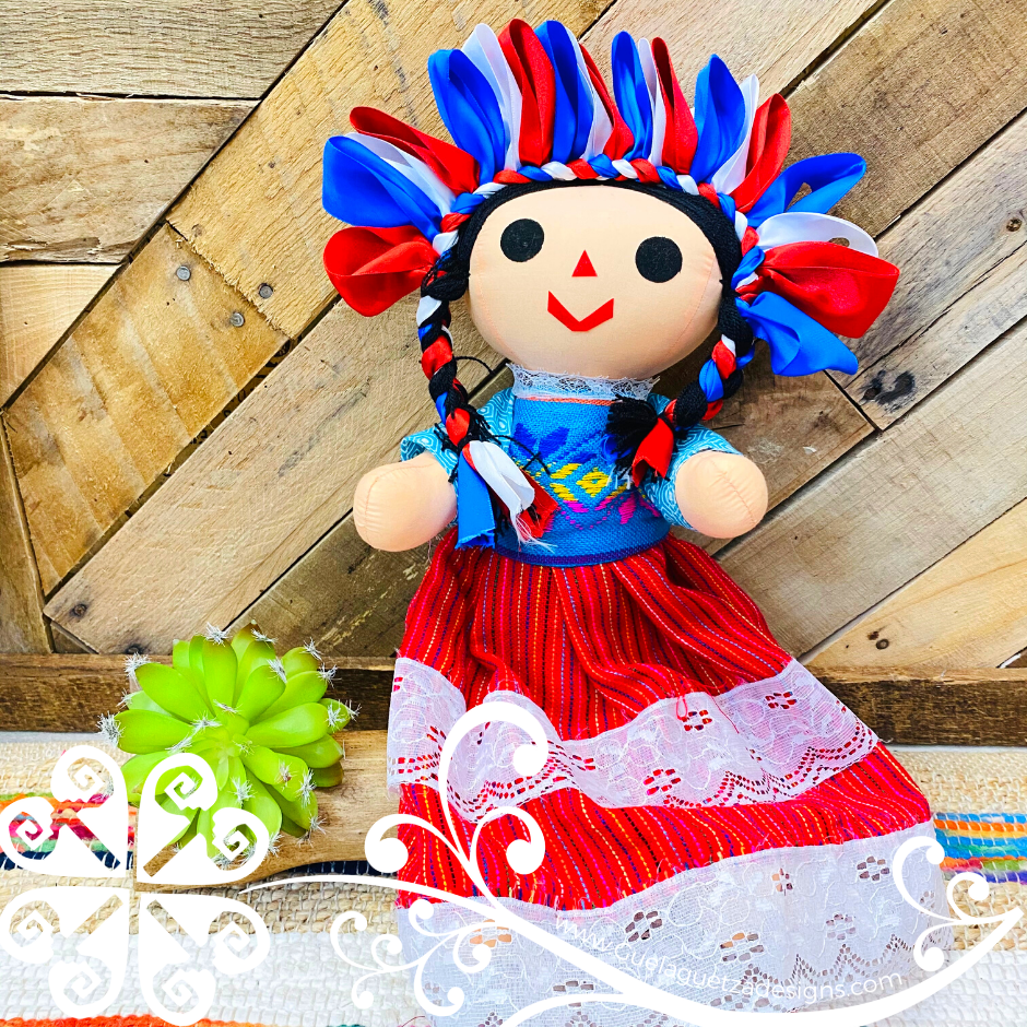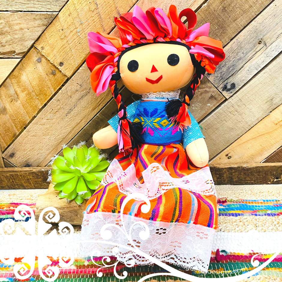 Perfect home decor which will add a more unique touch to a room. The doll is dressed in a Mexican colorful outfit with ribbon silk headband and braids.