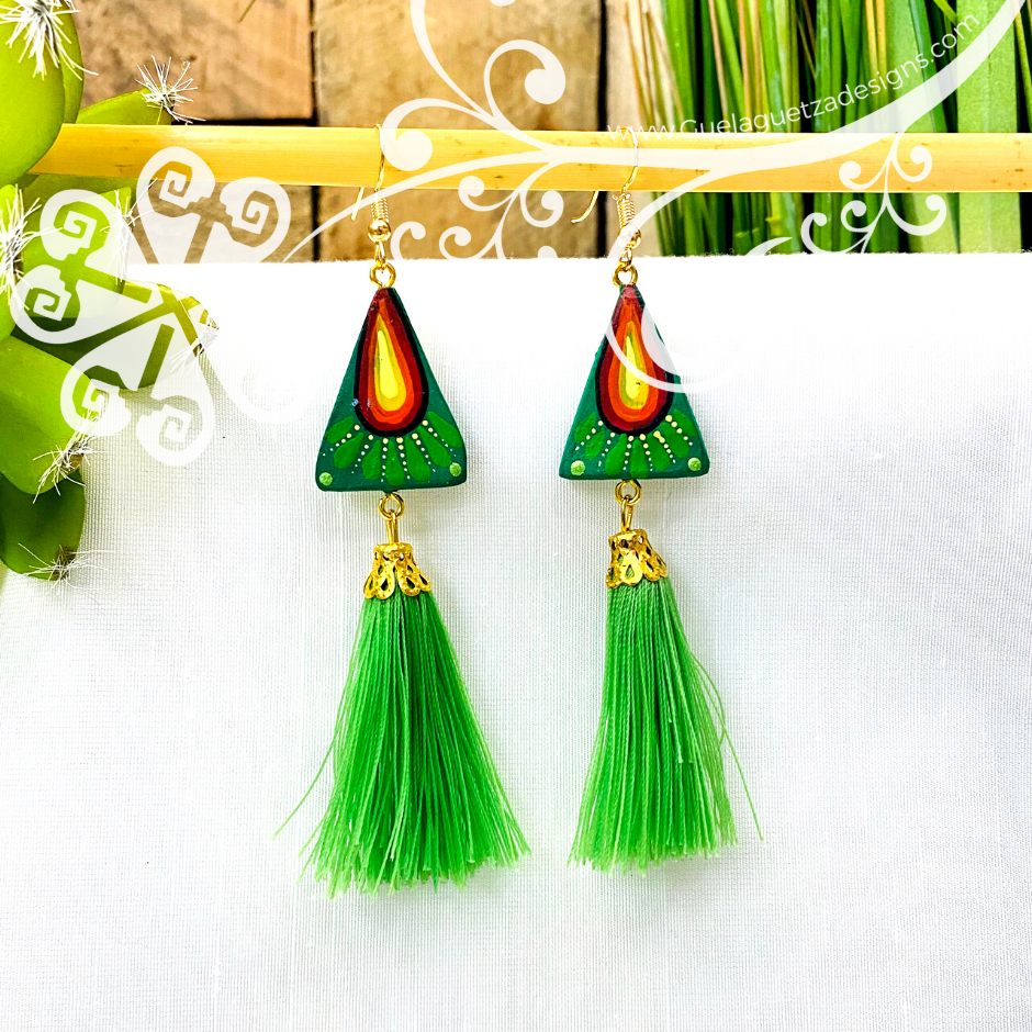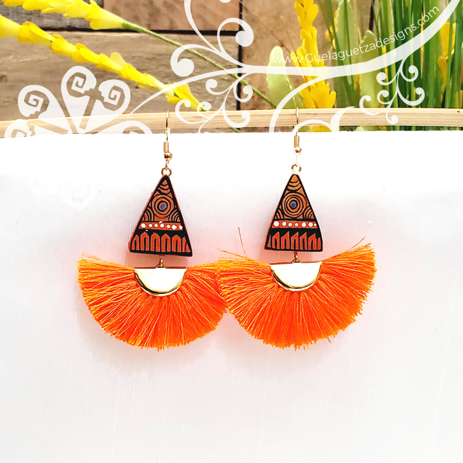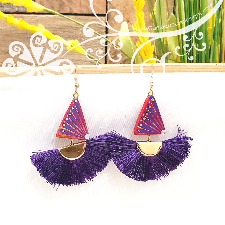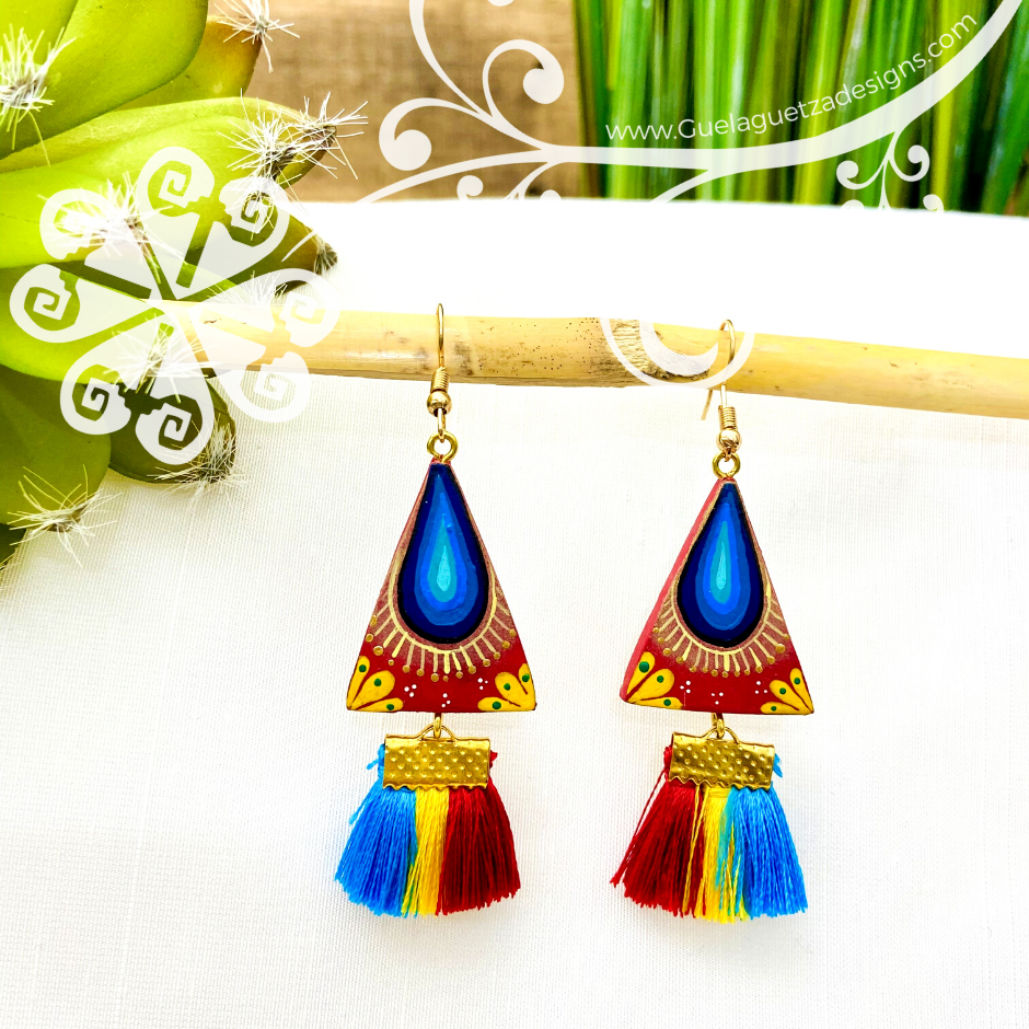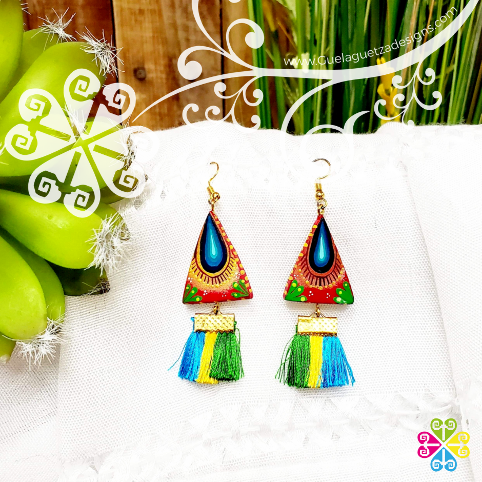 Truly one of a kind earrings! Hand carve and painted by local artisans from Oaxaca, Mexico. The hand painted designs are inspired on the Oaxacan culture, its colors, fauna and flora.