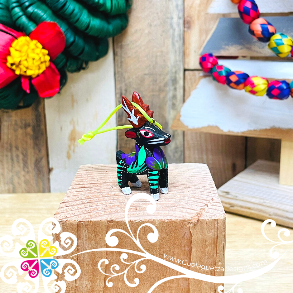 One of a kind hand carved wooden figures by Sueño Profundo workshop, from Zaachila, Oaxaca. This charm is perfect to hang on your rear view mirror, Christmas tree ornament, or to simply use as decoration around your home or office.