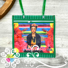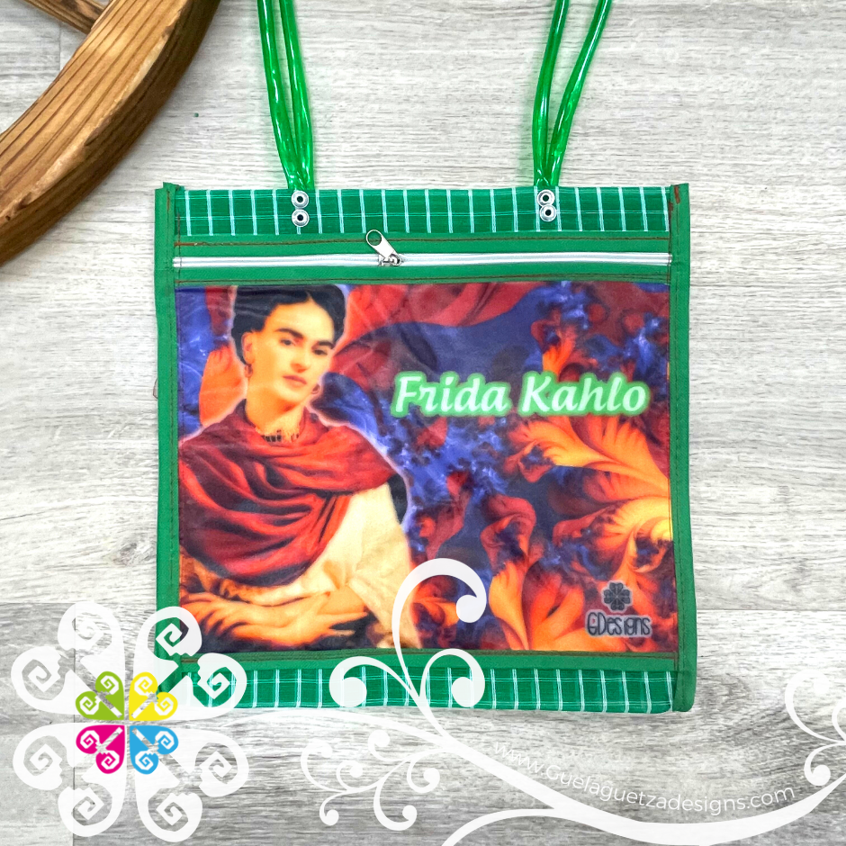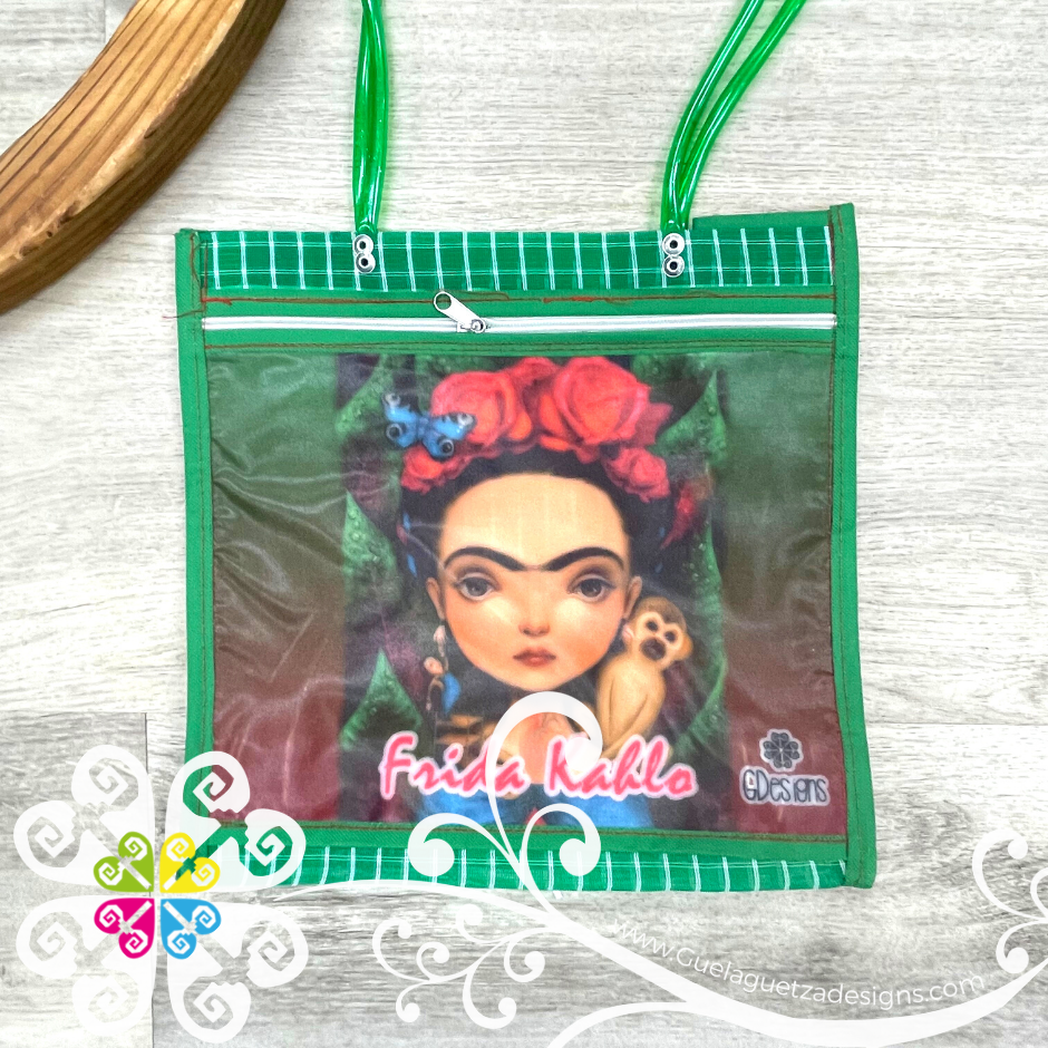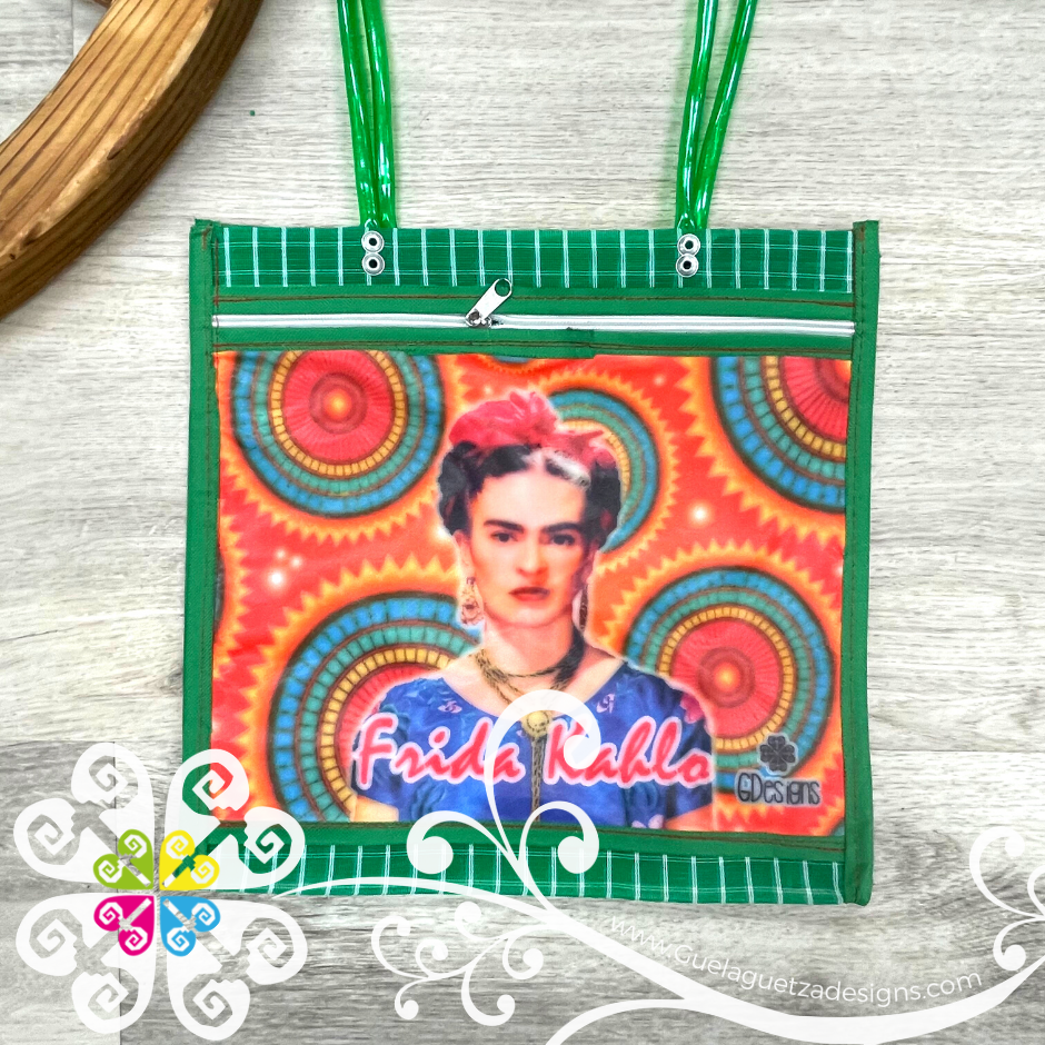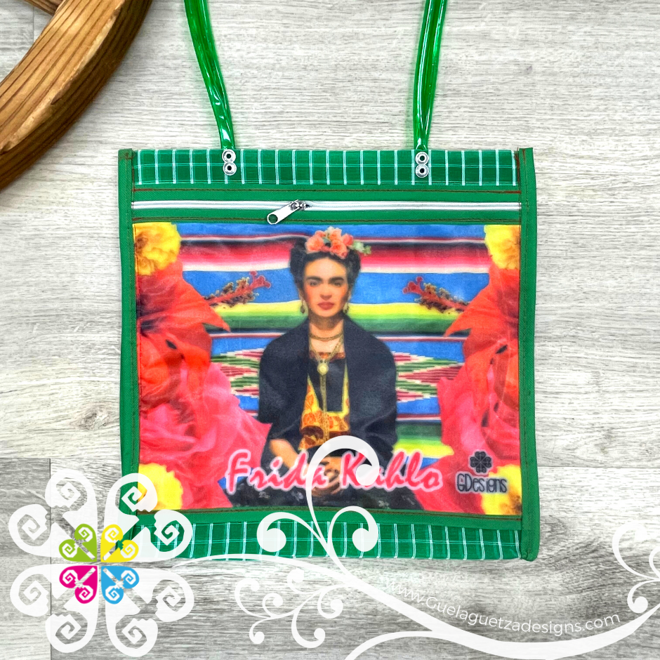 Inspired on the great Frida Kahlo! Morral made with mesh material, front large pocket with zipper to secure your belongings. Very resistant material, water proof! Perfect for grocery shopping, beach bag, laptop bag or just about anything!