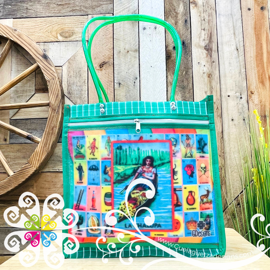 Inspired on the Mexican game LoteriaMX! Morral made with mesh material, front large pocket with zipper to secure your belongings. Very resistant material, water proof! Perfect for grocery shopping, beach bag, laptop bag or just about anything!