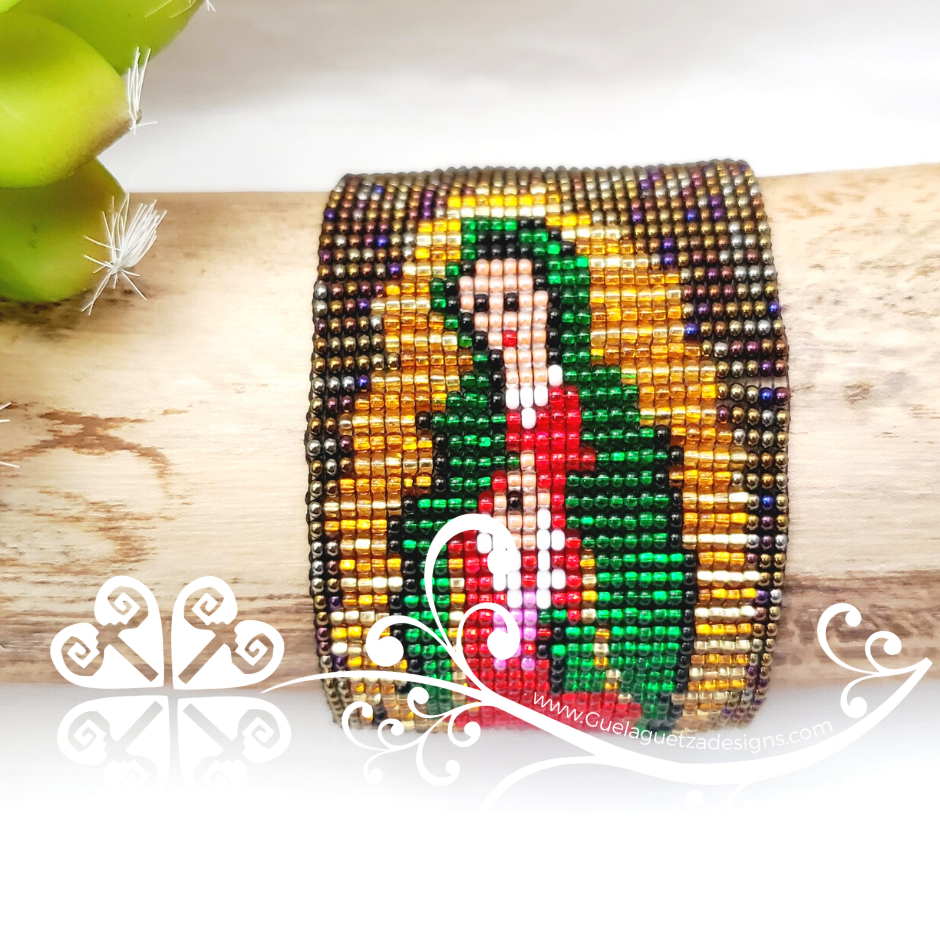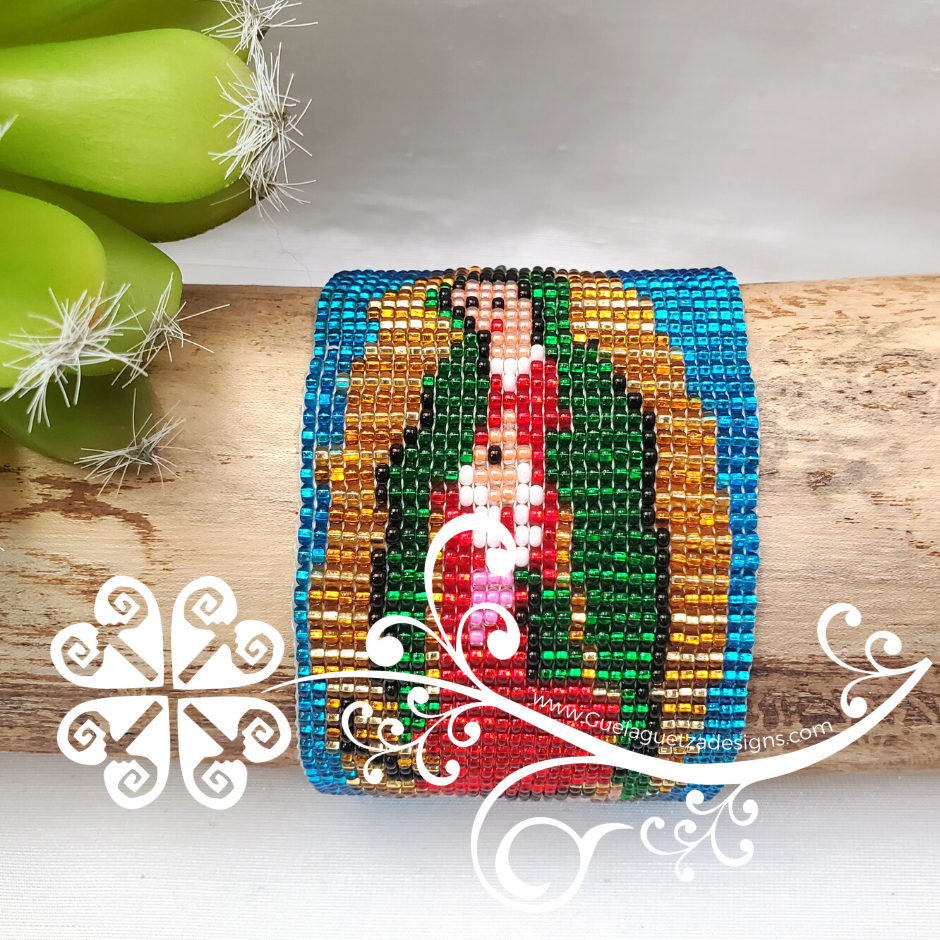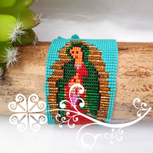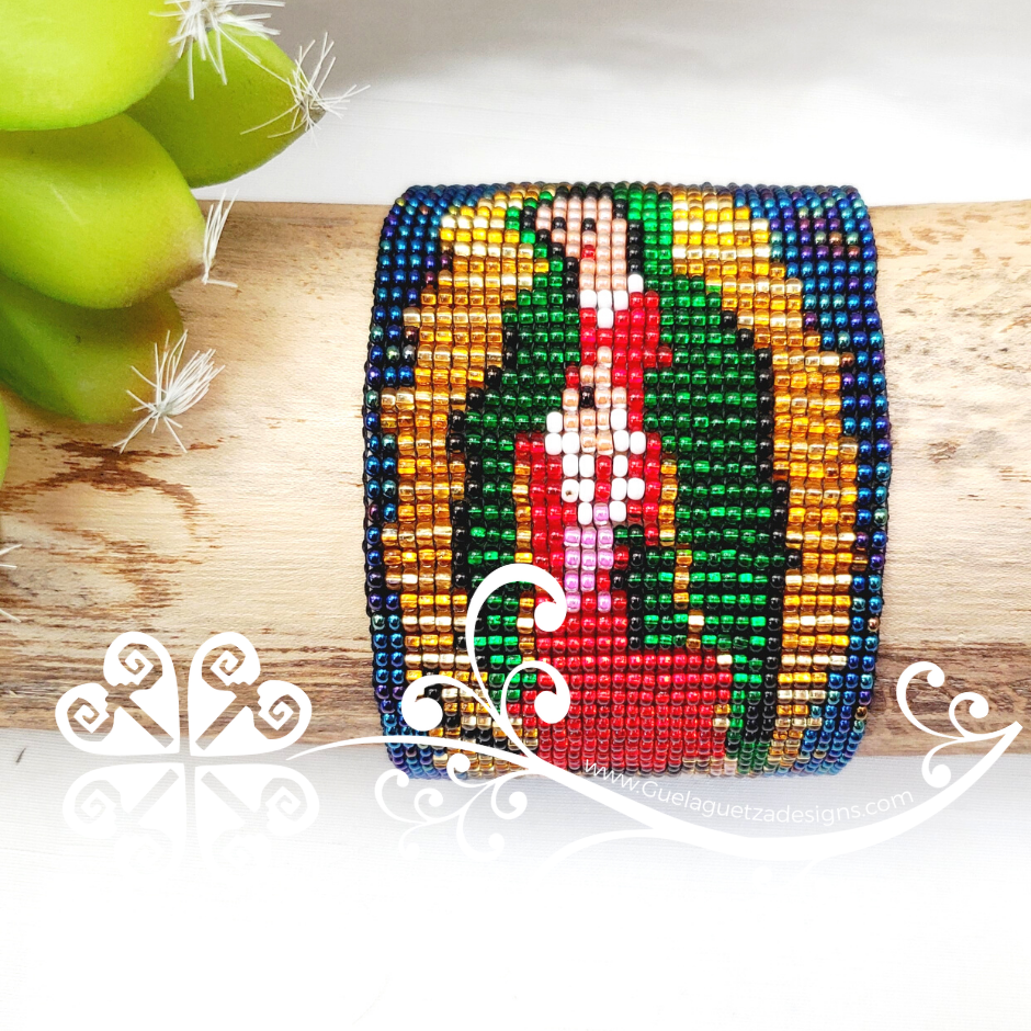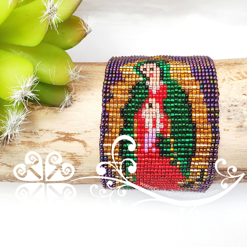 One of a kind bracelet s made with petite glass beads. Inspired on the Virgen de Guadalupe. You will love the details and colors!