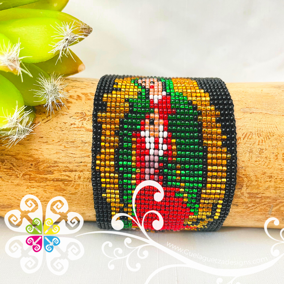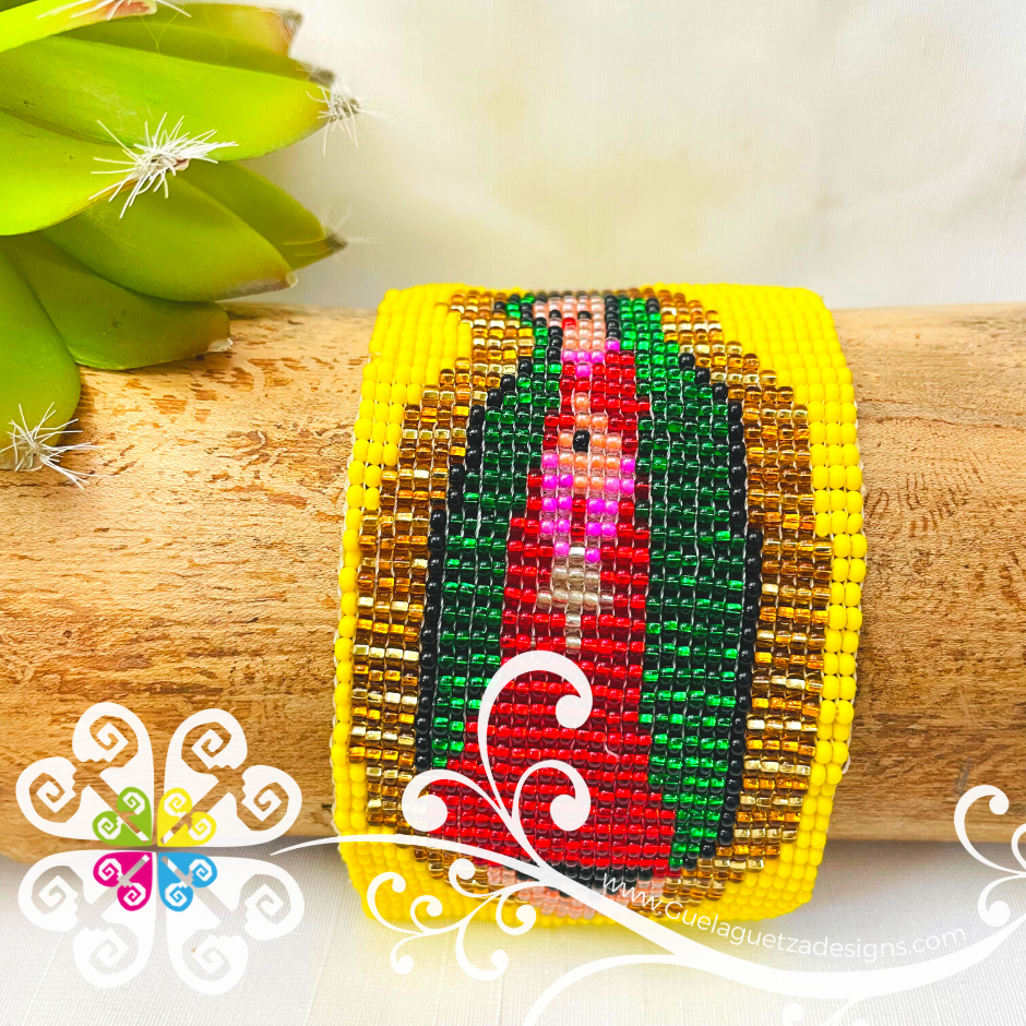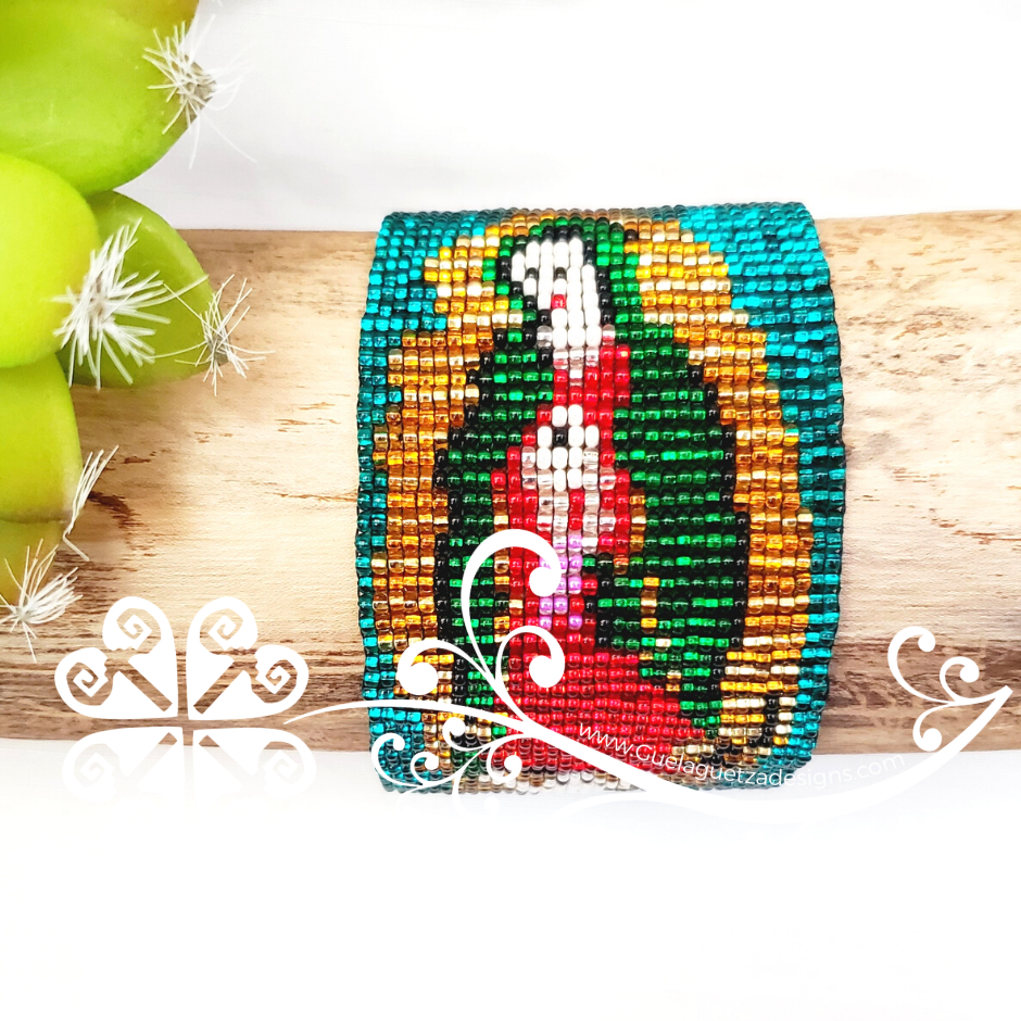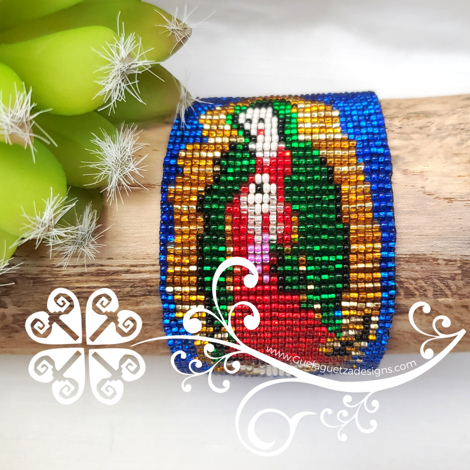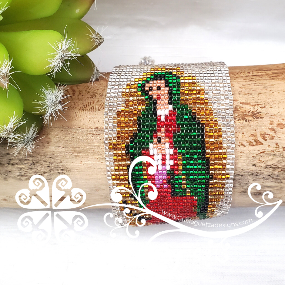 One of a kind bracelet s made with petite glass beads. Inspired on the Virgen de Guadalupe. You will love the details and colors!