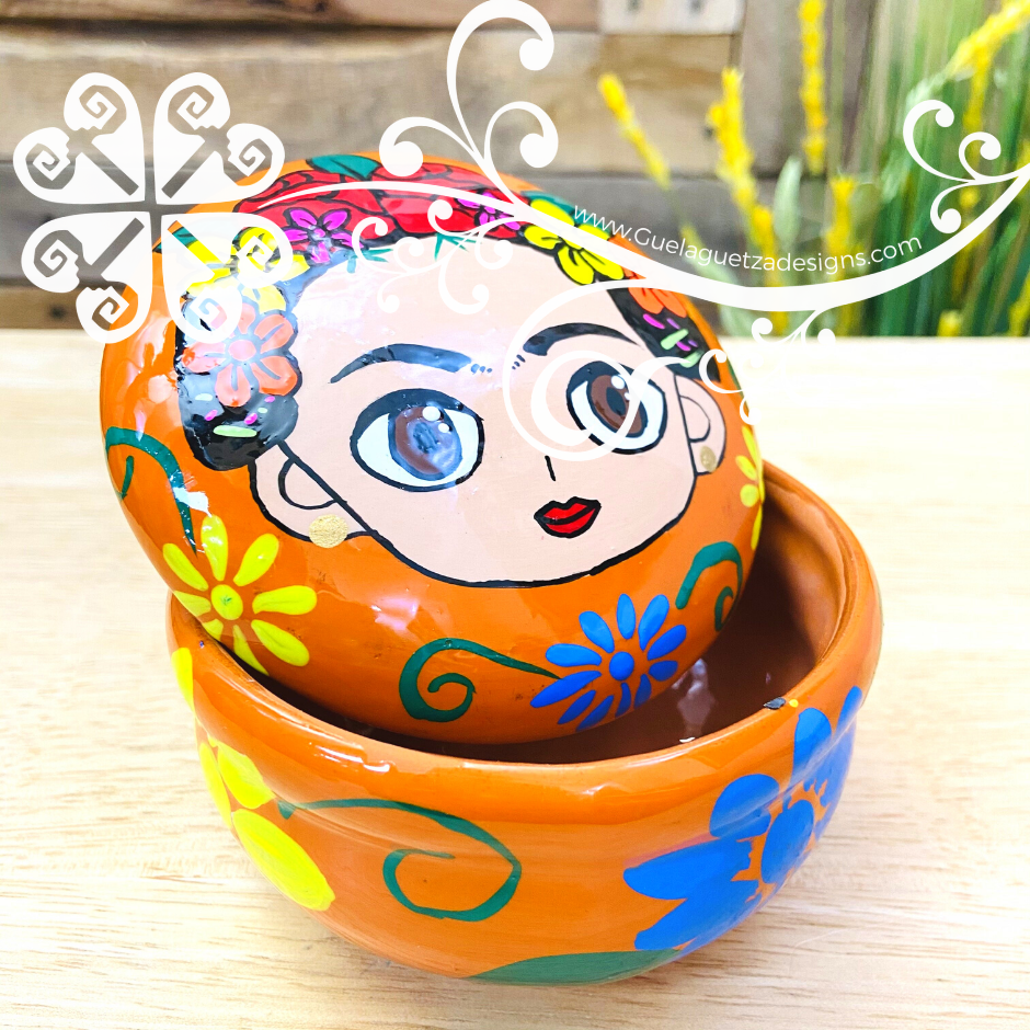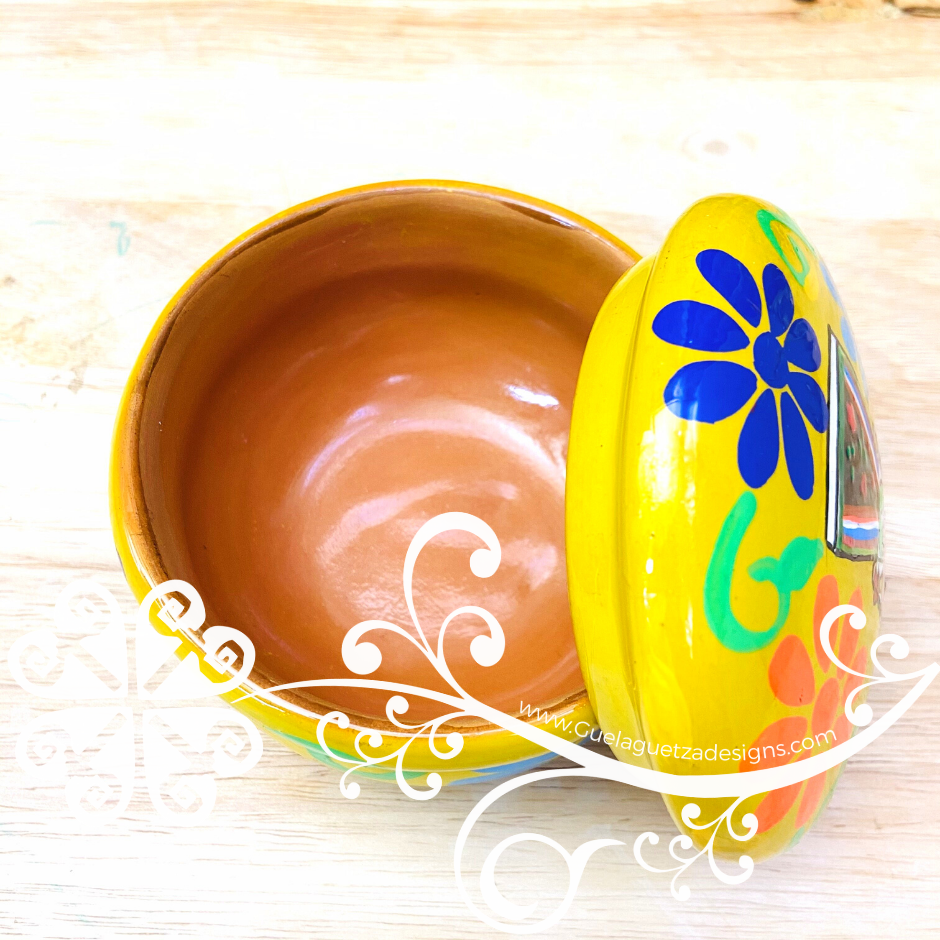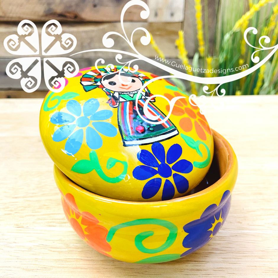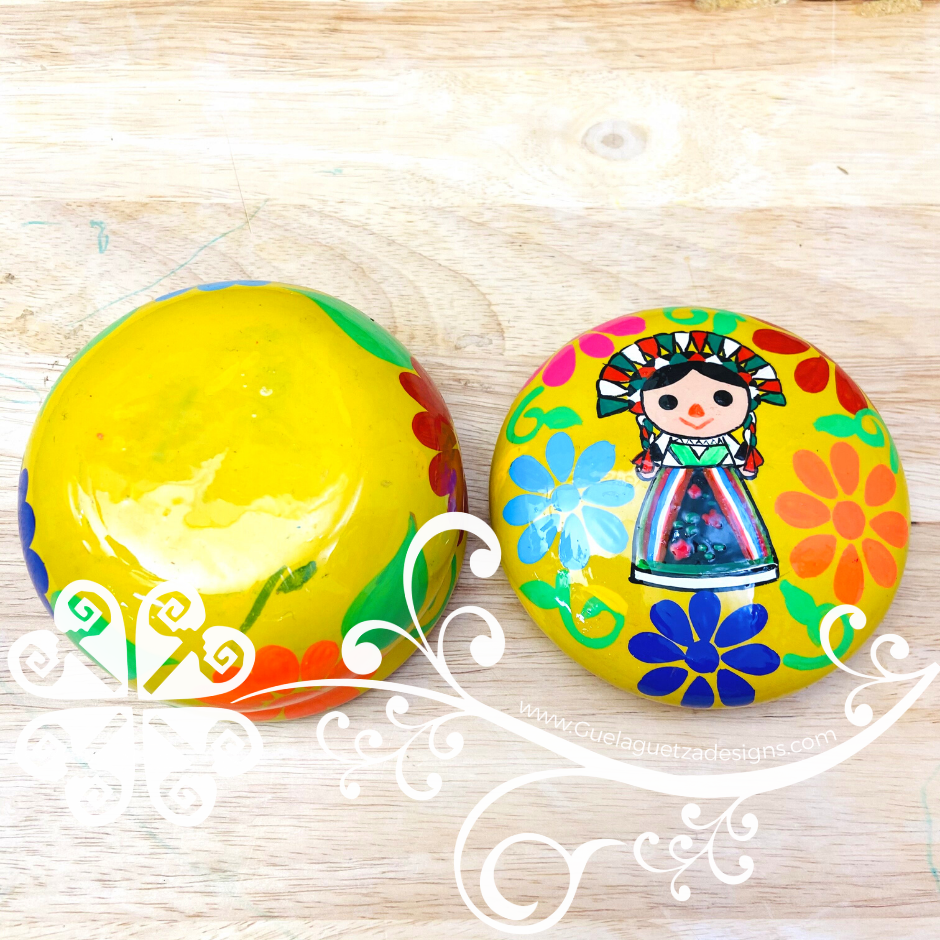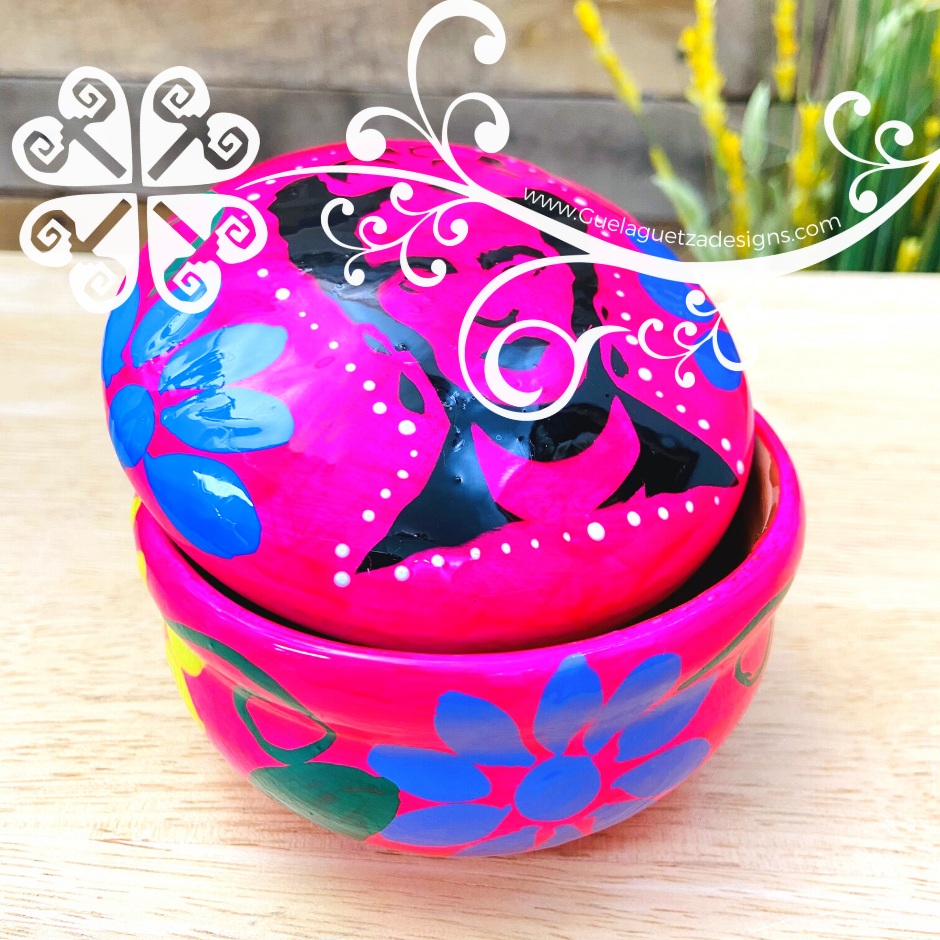 Beautiful handcrafted item that can be used to storage your jewelry, as well as candies, coins or any small items. Each piece is hand painted with care and love by artisans from Mariana's workshop from Tejalpa Jiutepec in the state of Morelos, Mexico.