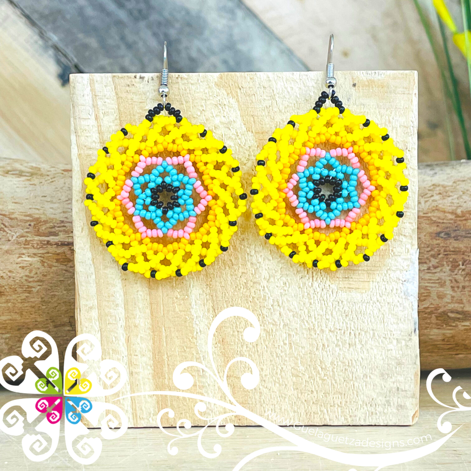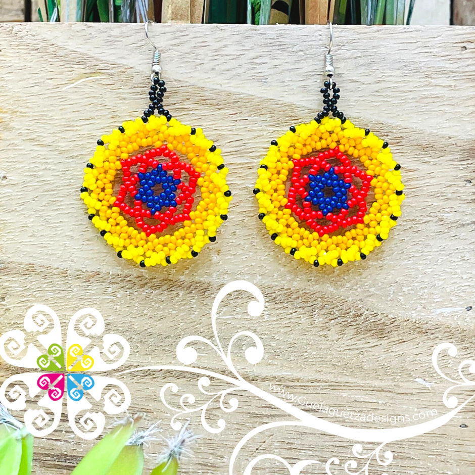 One of a kind earrings made with petite glass beads. Each design uses different shapes and colors, featuring a vibrant rainbow palette or just plain colors.