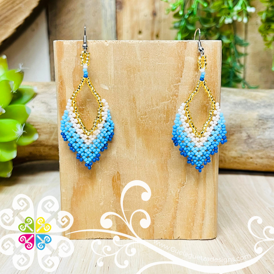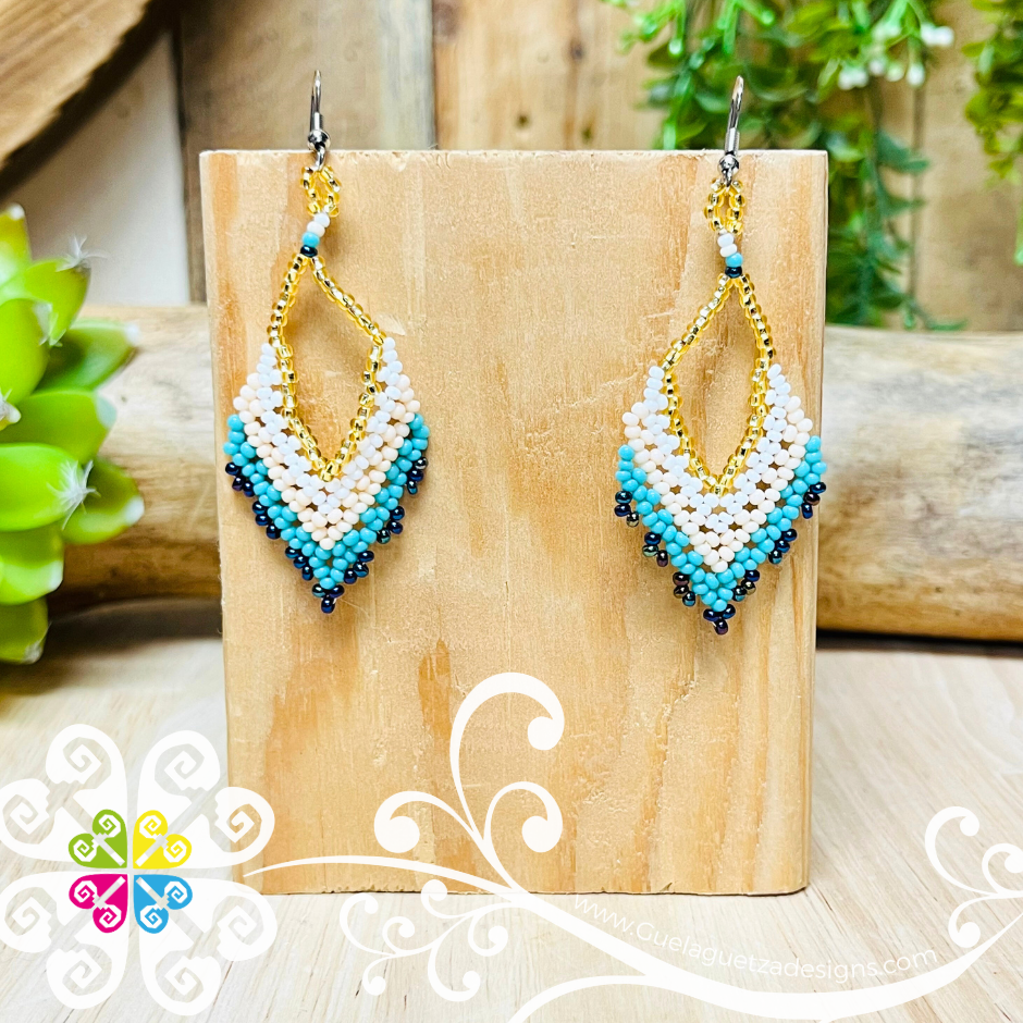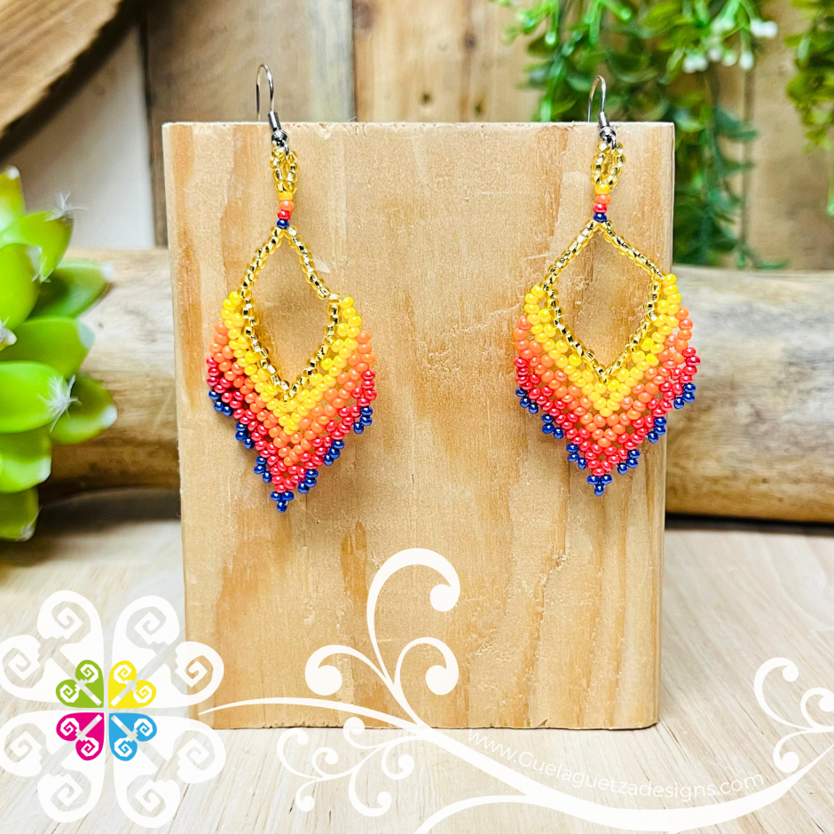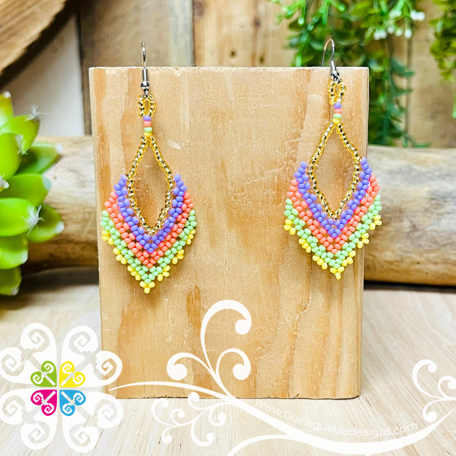 One of a kind earrings made with petite glass beads. Each design uses different shapes and colors, featuring a vibrant rainbow palette or just plain colors.