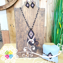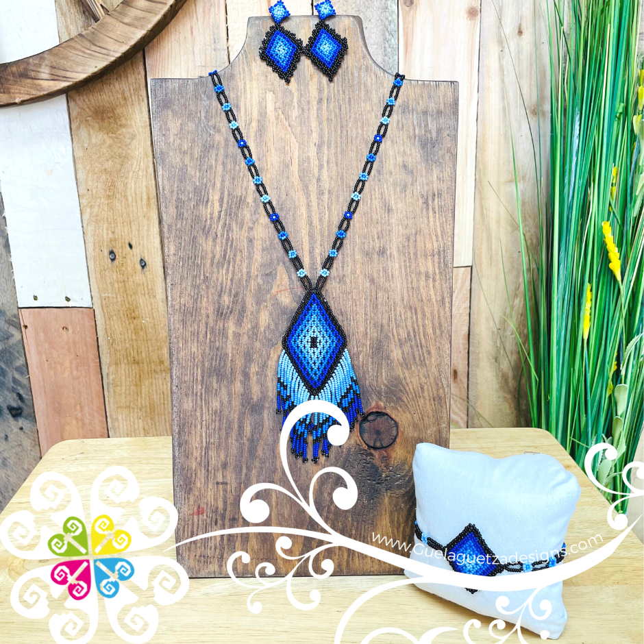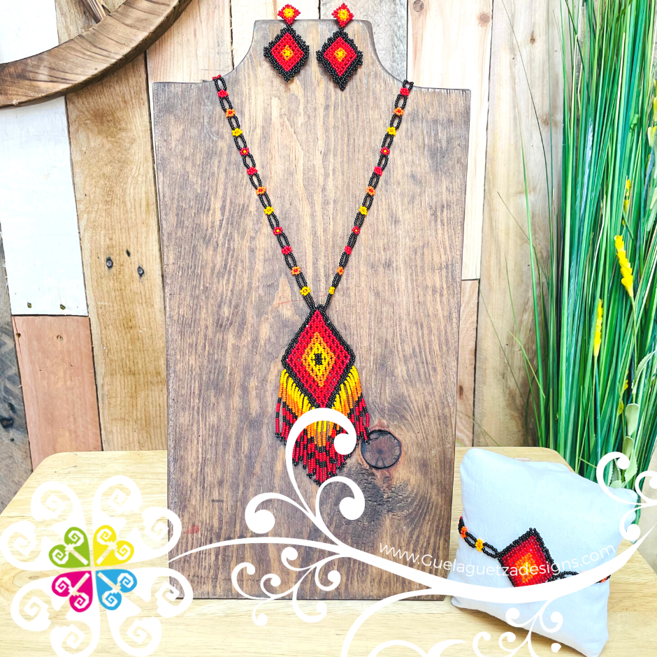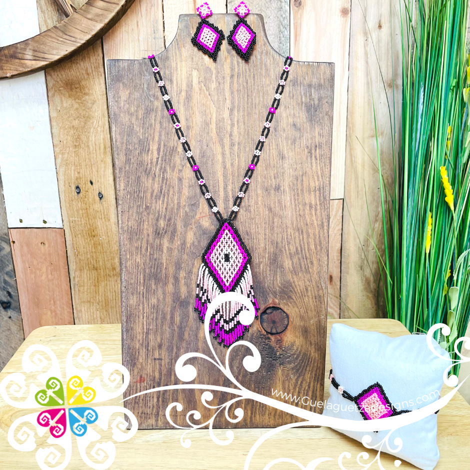 Beautiful 3 piece set that includes matching earrings, necklace and bracelet so you look amazing next time you go out. Each design is made with petite glass beads, featuring super cute rhombus designs made with different colors that can go from vibrant rainbow palette or just subtle tones.