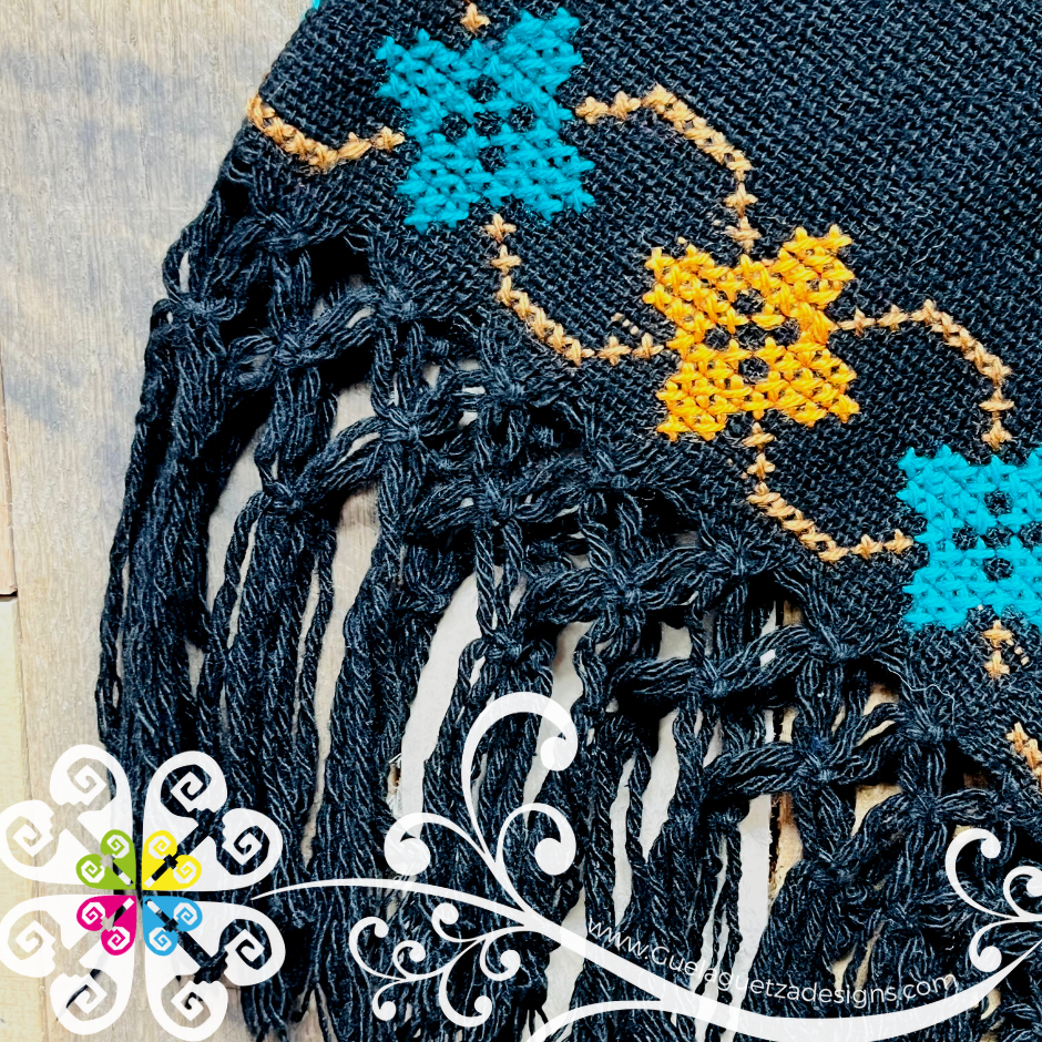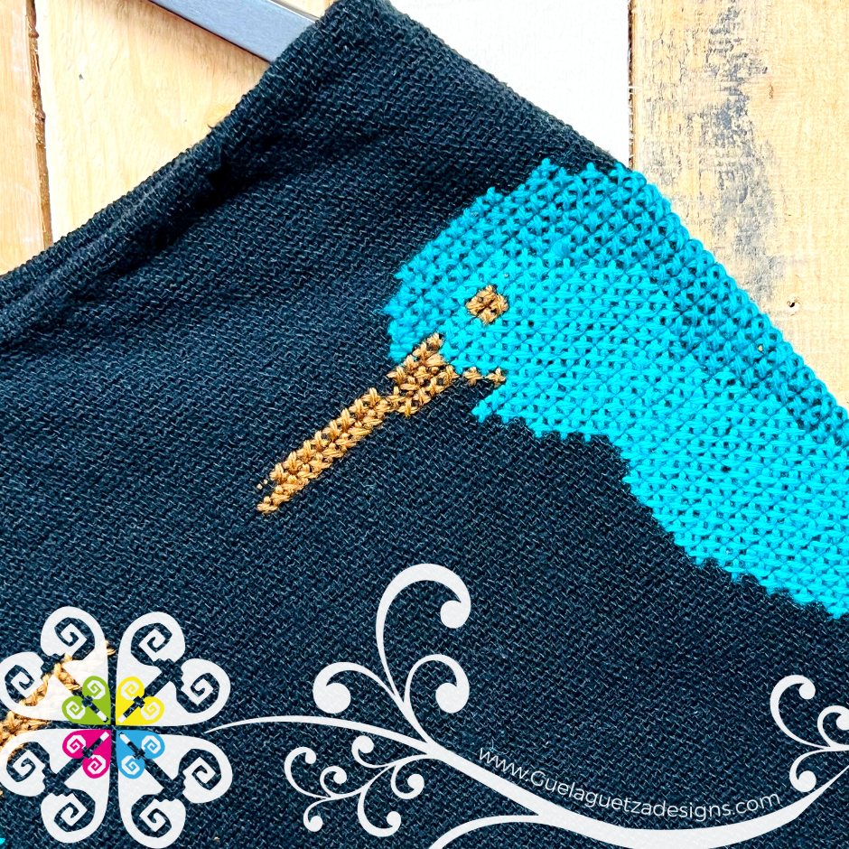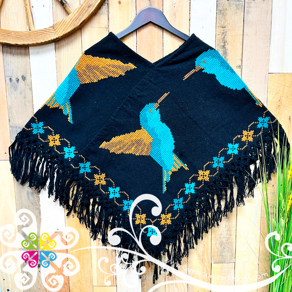 Beautiful one of a kind embroider poncho. Base is made with plain cotton and acrylic threads and decorated with hand made cross stitch embroider. Beautiful embroider inspired on the hummingbird. Same design in front and back.