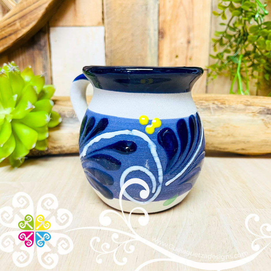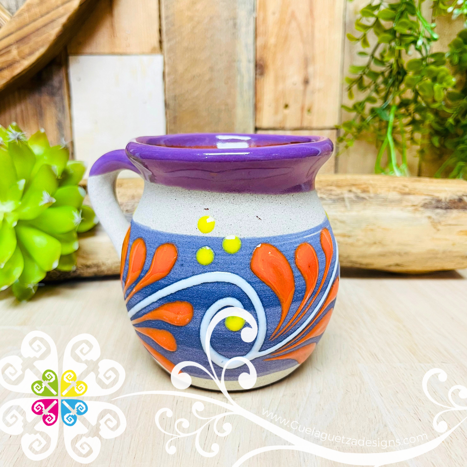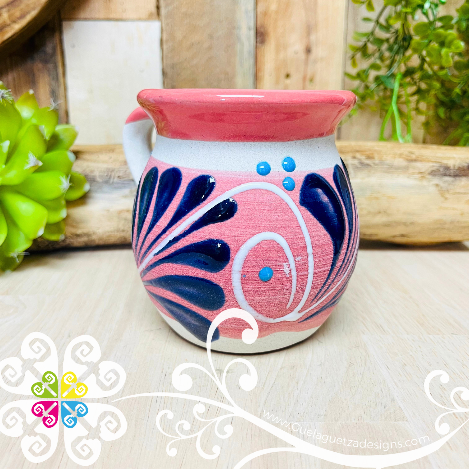 Beautiful clay mug created using ancient process by workshop Godinez from Dolores Hidalgo, Mexico. Each design is crafted by hand, with love and passion. Perfect for decoration or safe to drink any cold or hot liquids from it.