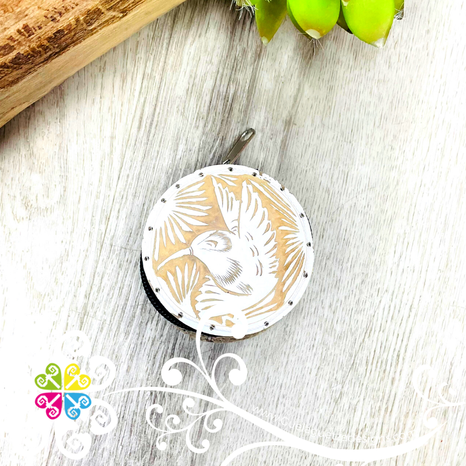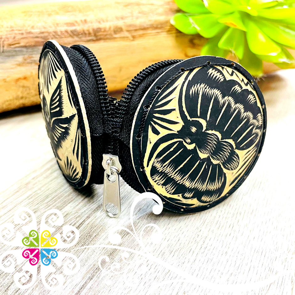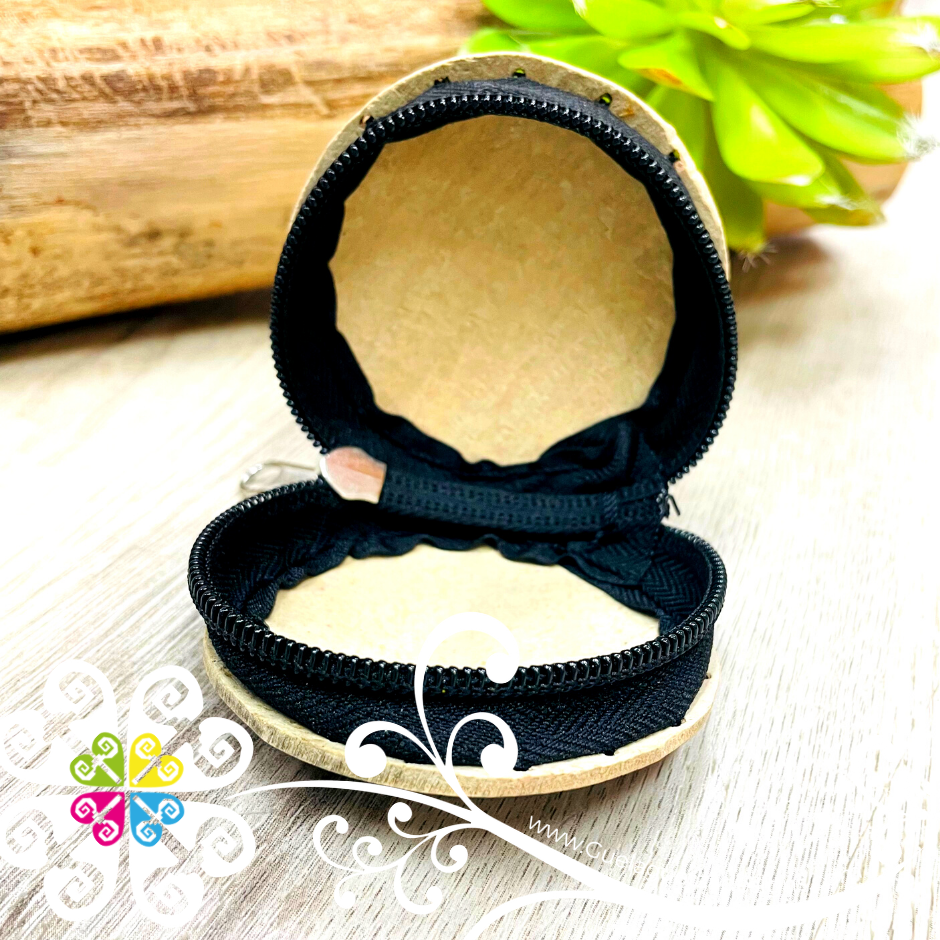 Super cute coin purse made from gourd, painted and every detail is carefully hand carve by artisans from Pinotepa, Oaxaca. Each design uses different shapes and colors, featuring a vibrant rainbow palette or just plain colors. Perfect for your coins, small objects or make up. You will love the zipper to keep your items secured.