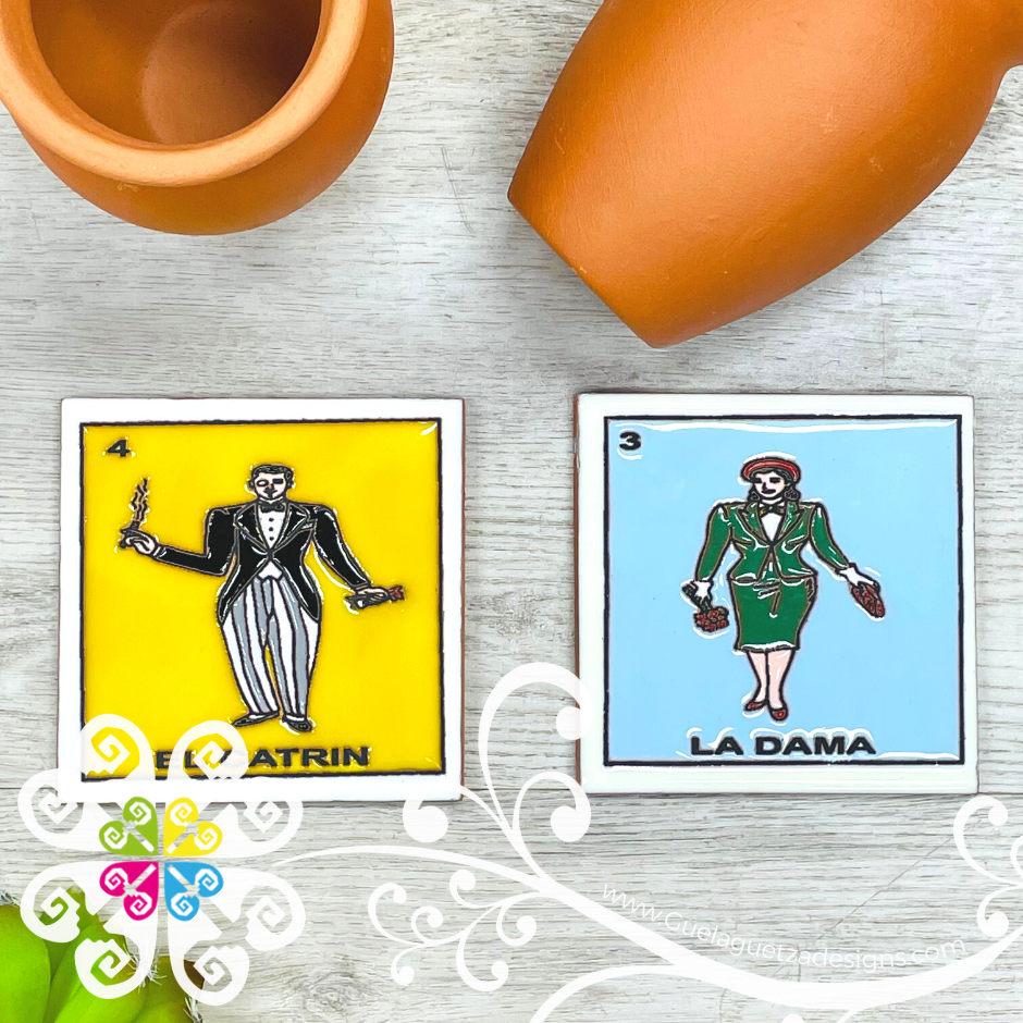La Dama & El Catrin LoteriaMX - Set of Clay Coasters