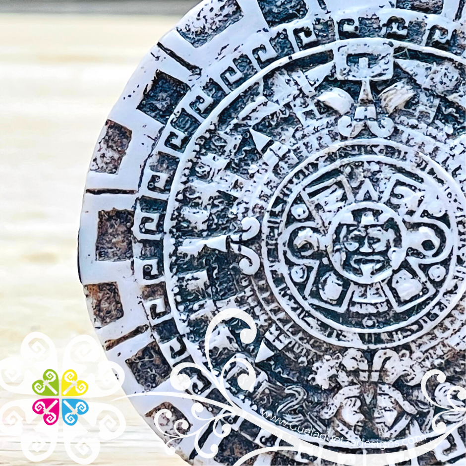 Beautiful handcrafted design made with resin. Inspired from the Aztec Calendar. Give a touch of originality to your home with this decoration item.