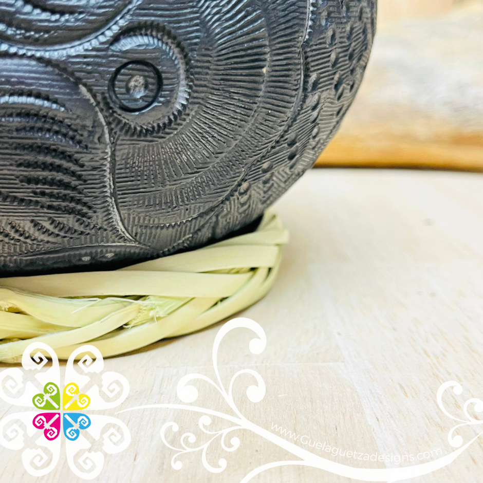Medium Carved Cantarito Black Clay Vase - Barro Negro Oaxaca