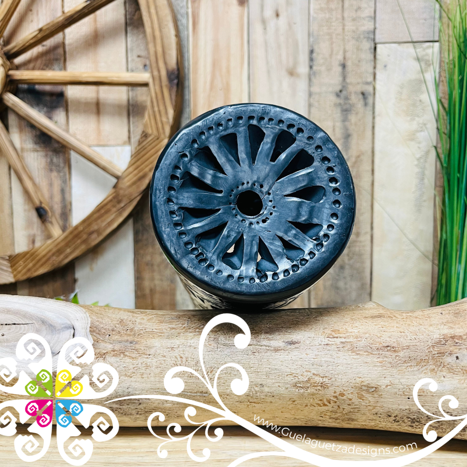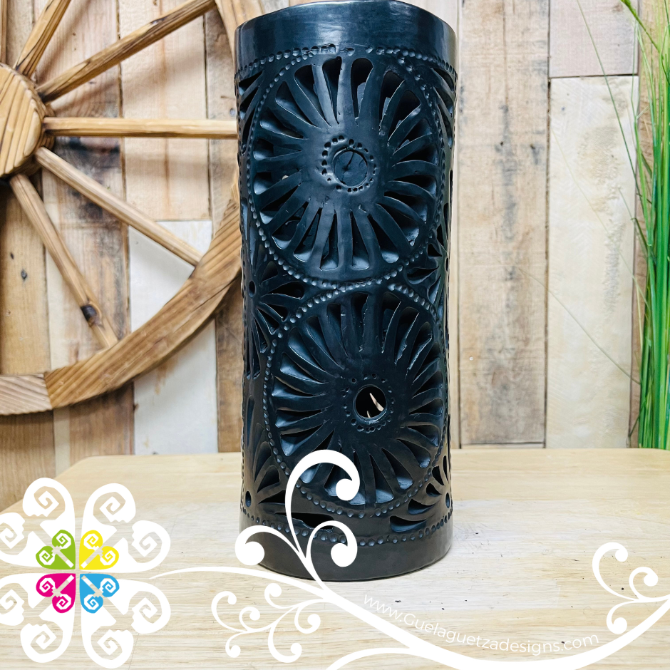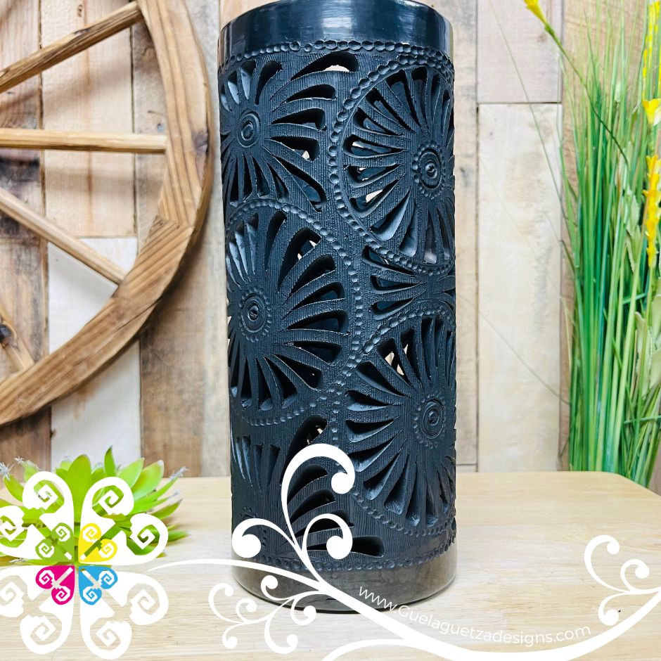 Beautifully handcrafted vase, perfect for any space of your house or office. Use for paper or dryer flowers, candle lighting, and many more! Each piece is hand-crafted with care and love by the workshop from San Bartolo Coyotepec Oaxaca, Mexico.
