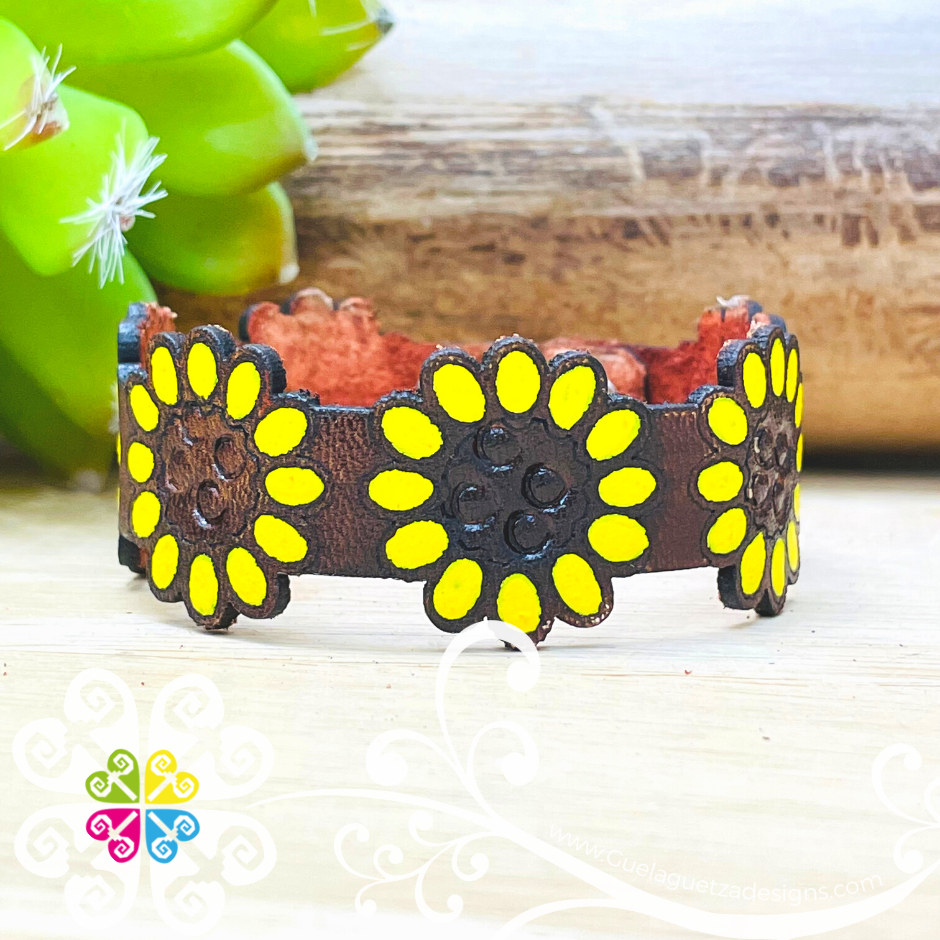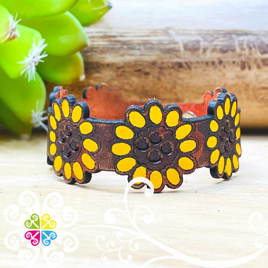 Large Sunflower Leather Bracelet - Kids Bracelet