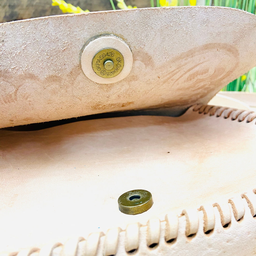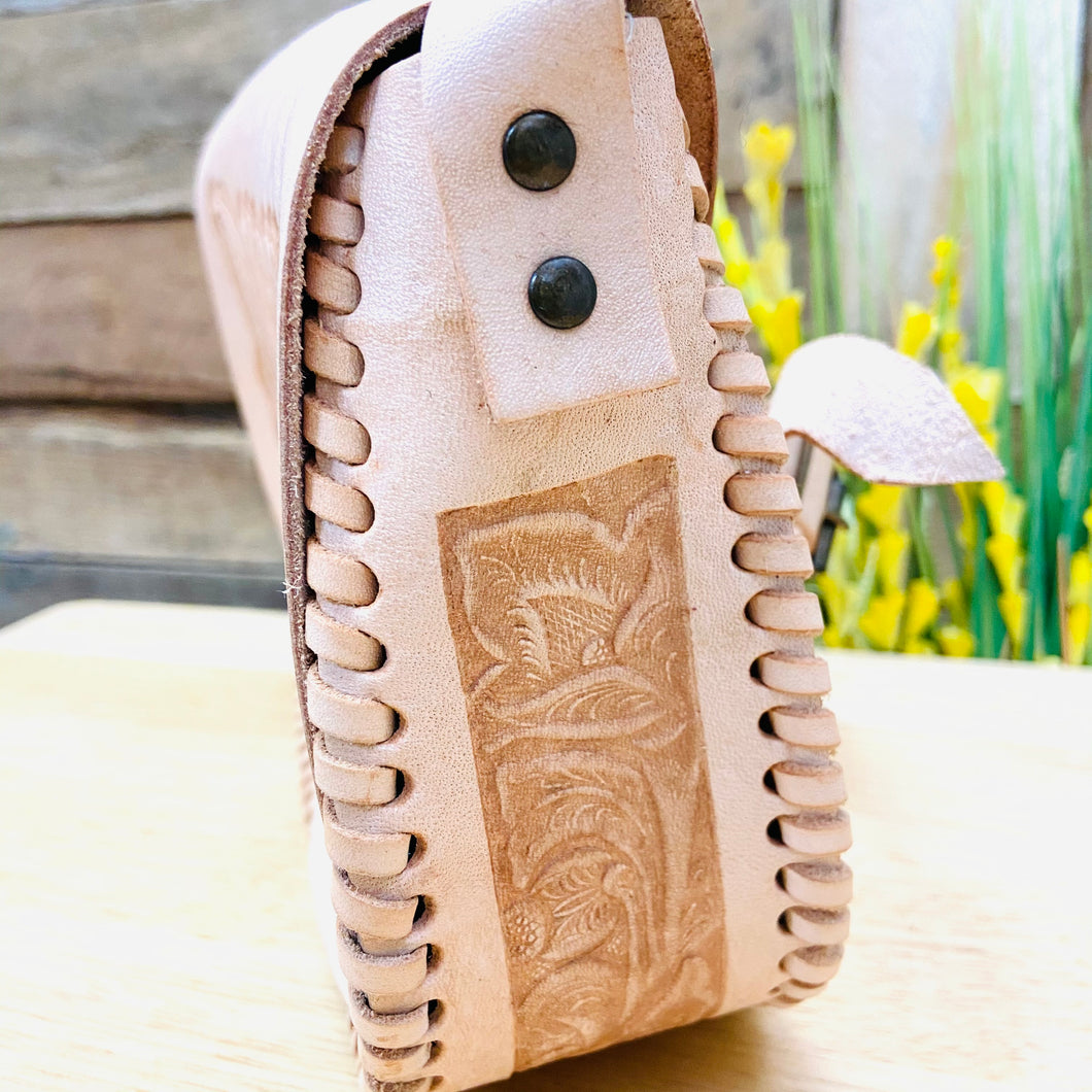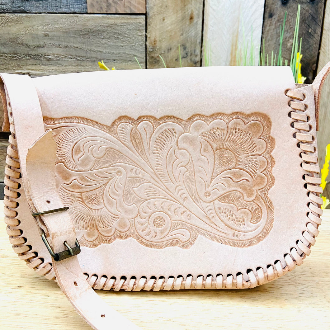 Handmade in Sahuayo, Michoacan using vacuno leather from top to bottom. Beautiful printed stamping in front, back and sides. Snap button in the front to secure your belognings and adjustable strap. You will simply love it!