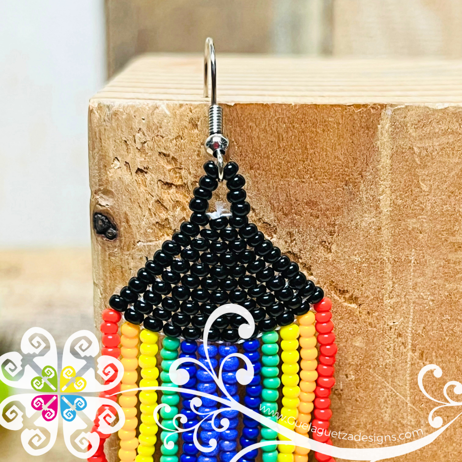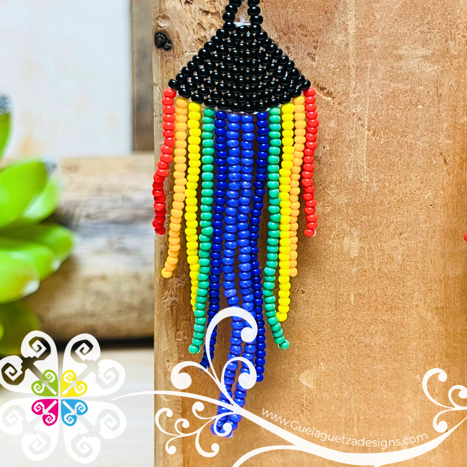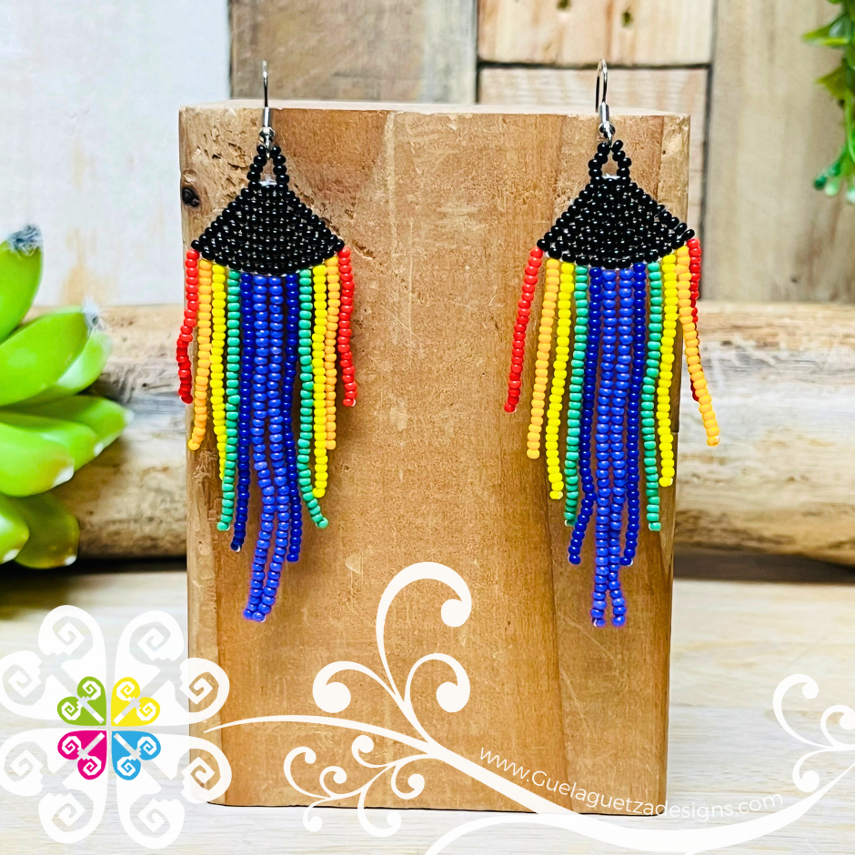 One-of-a-kind earrings made with petite glass beads. Each design uses different shapes and colors, featuring a vibrant rainbow palette or just plain colors.