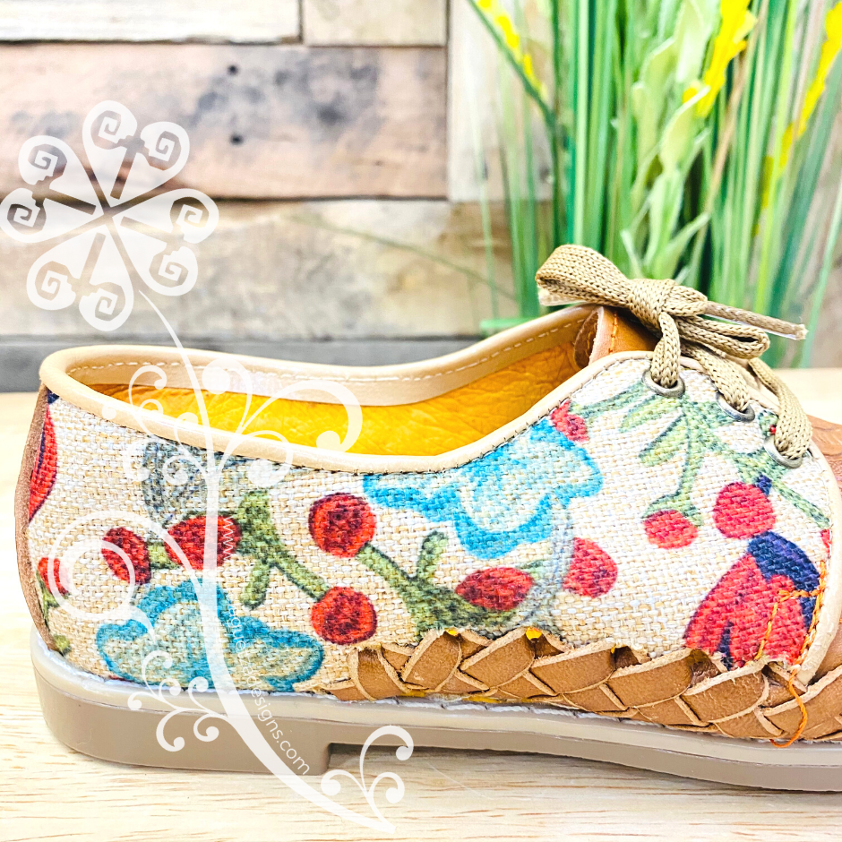 Artisan shoes made with 100% bovine leather for the exterior and inside sole. Decorated with unique resist jute artisan fabrics and the front features a beautiful "troquelado' design.
