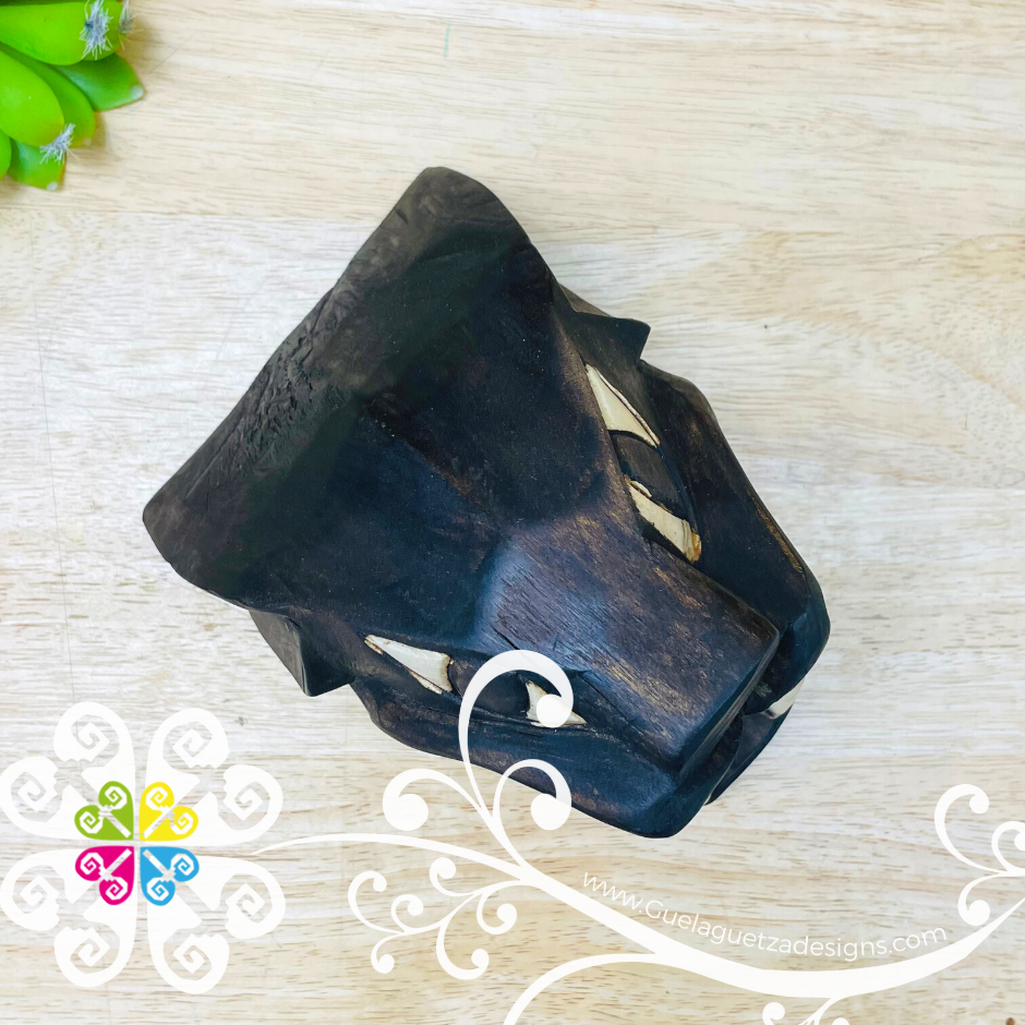 Beautiful and elegant jaguar head from the Mayan Culture. Hand carved by artist from Tinum, Yucatán. The Jaguar is consider the ruler of the underworld for Mayan culture, you are getting a very unique art and support Mexican small workshop from Tilum.