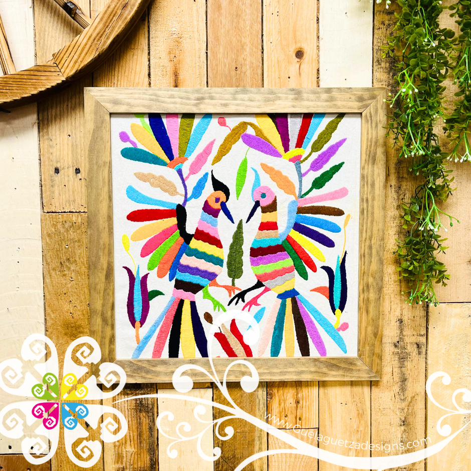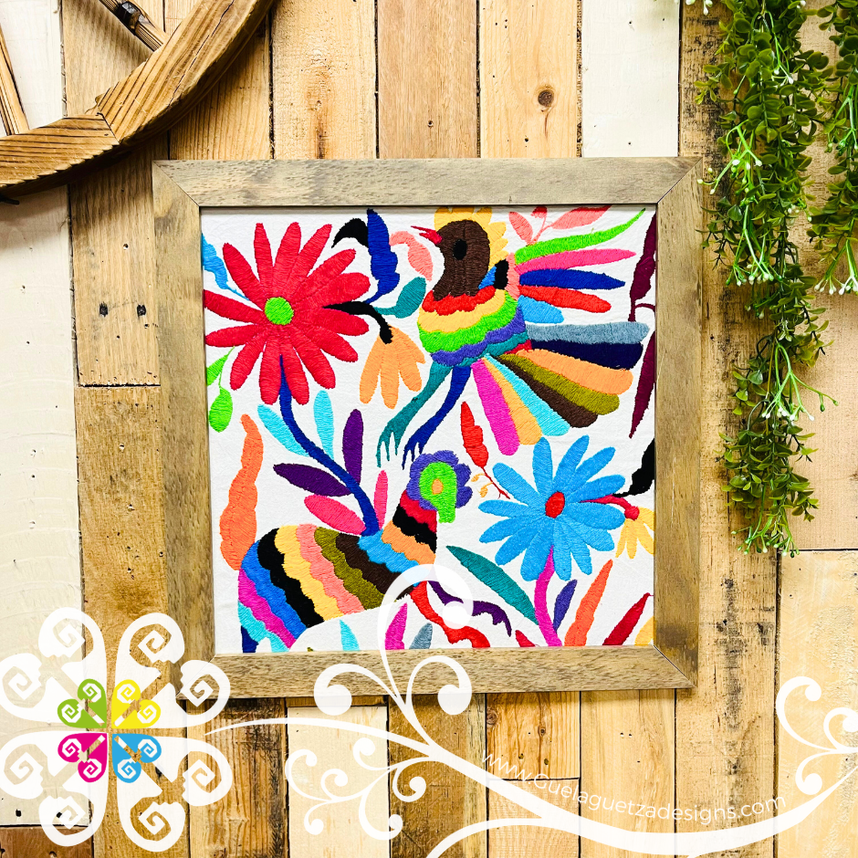 You will fall in love with this stunning hand embroidered wall décor. Hand crafted by Mexican artisans from Hidalgo, Mexico. Each piece features beautiful flowers, birds and animals inspired by the Otomí culture.