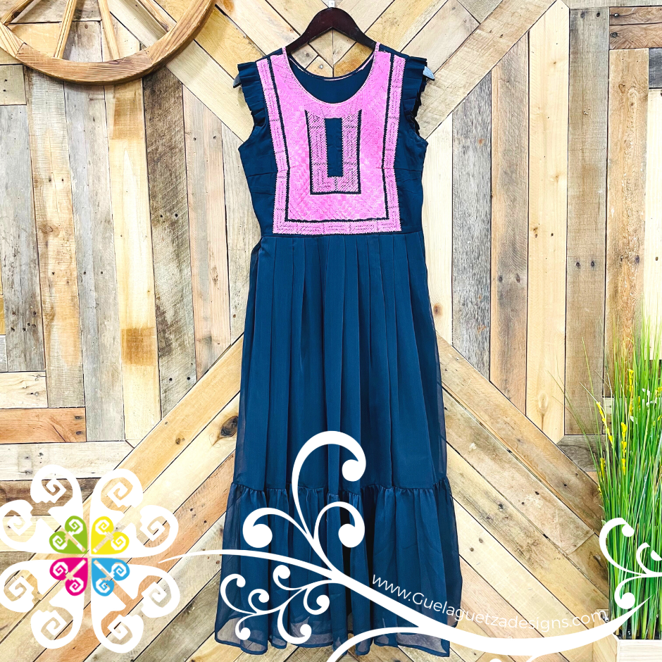 Beautiful summer dress, fresh and elegant design. You will love the machine embroider made by artisans from El Istmo de Tehuantepec, Oaxaca. Design with chiffon and cotton fabrics in different colors and patterns. Skirt has an opening all the way, add a safety pin to the desire length to show your leg.