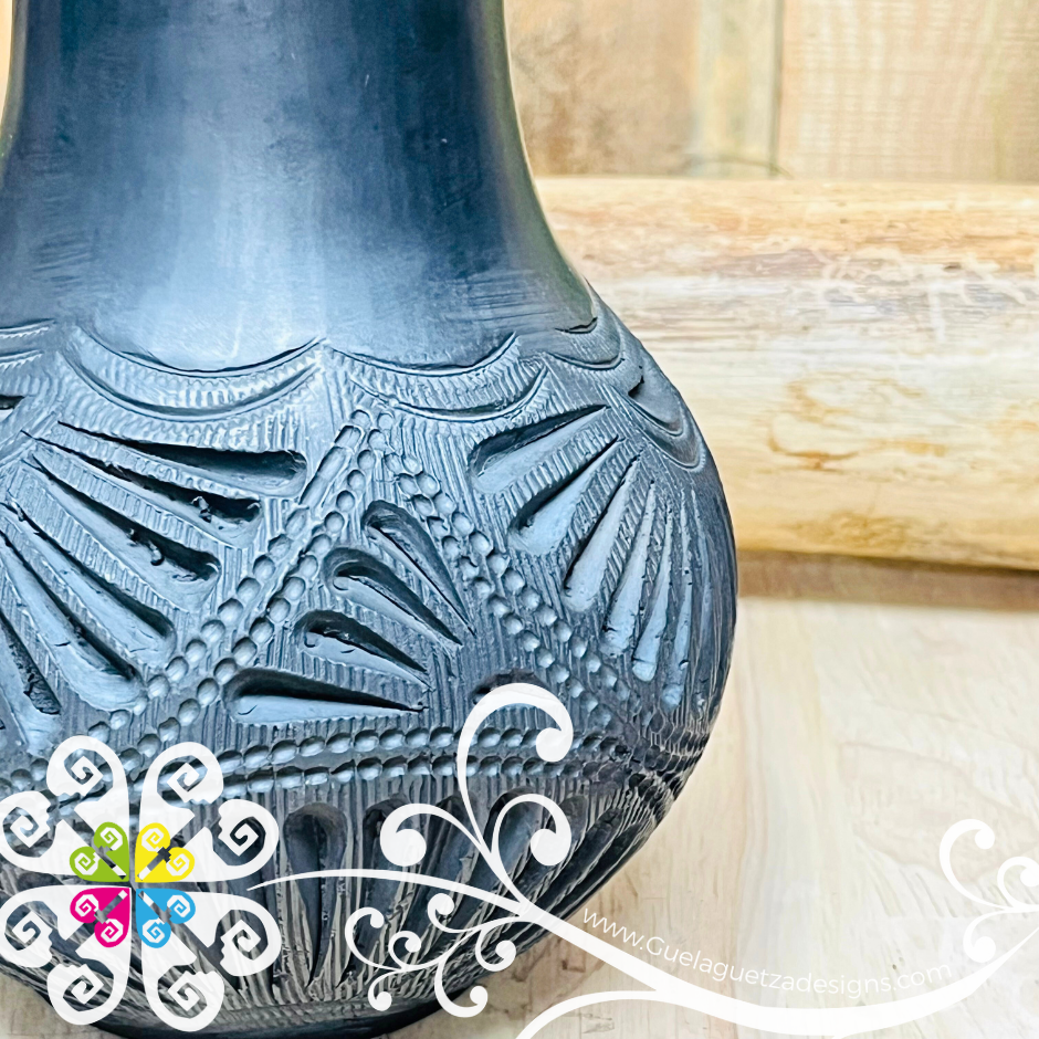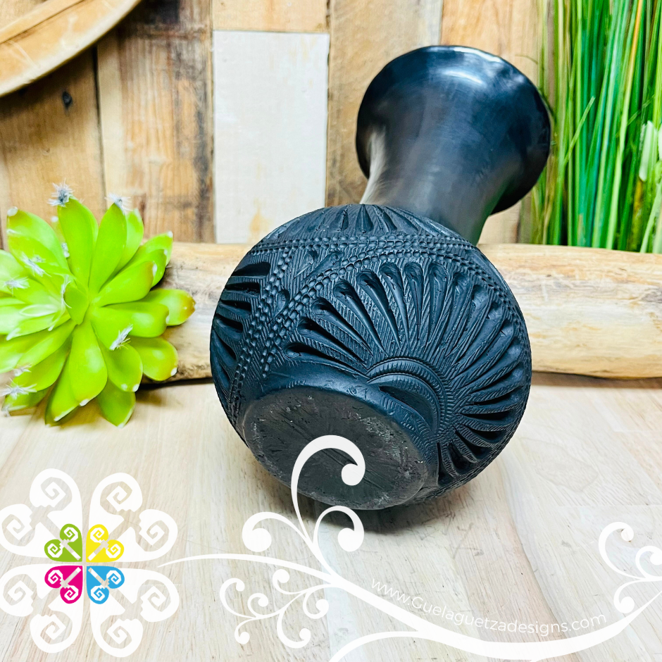 Medium Cartuchero Black Clay Vase - Barro Negro Oaxaca