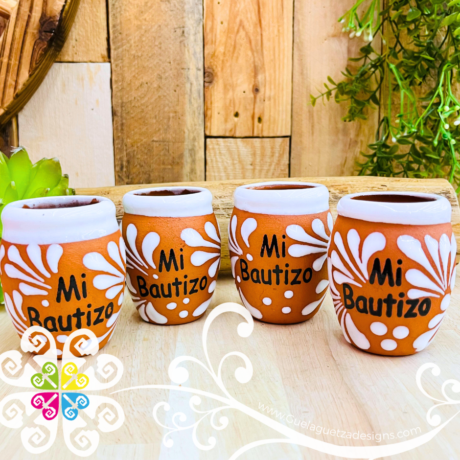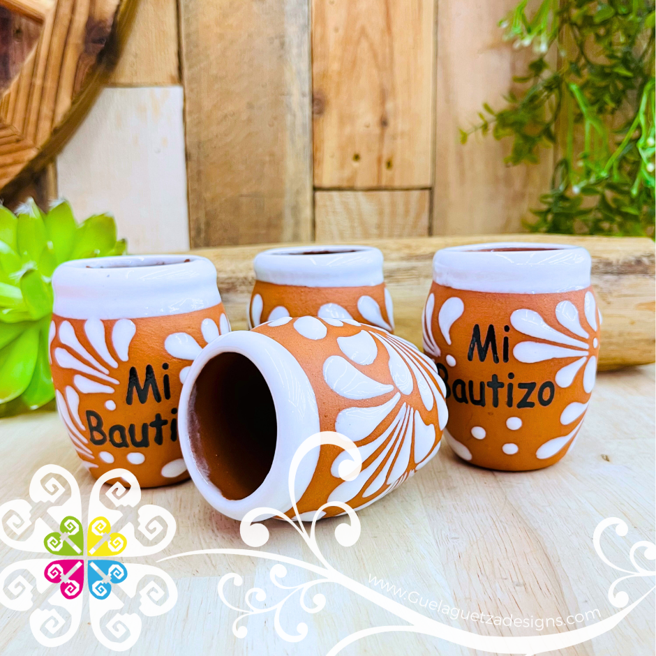 Mi Bautizo - Natural/White Tequilero Set - Clay Tequilero Set