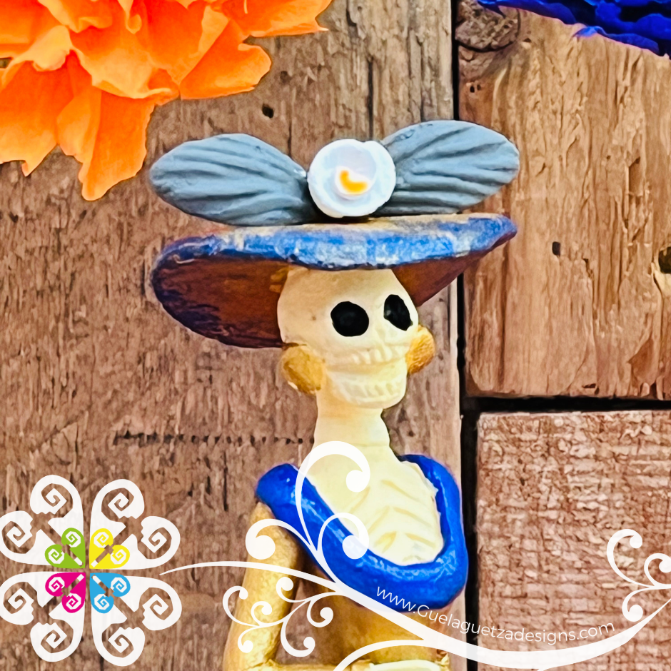 Beautiful clay mini catrina, perfect for any space of your house or office. Each piece is hand-crafted with care and love by Antonio Ruiz from Capula, Michoacan Mexico.