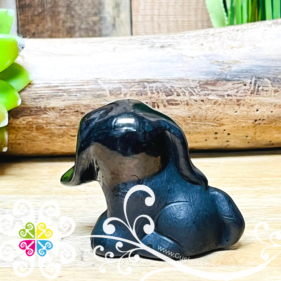 Mini Seated Puppy Black Clay Figure - Barro Negro Oaxaca