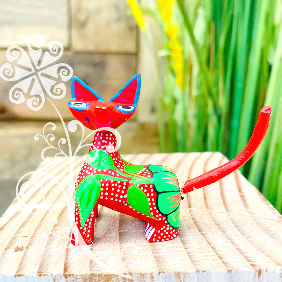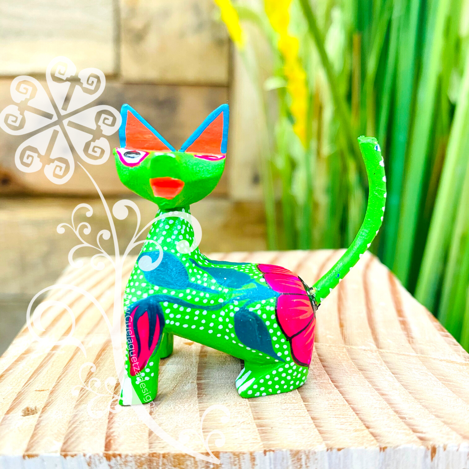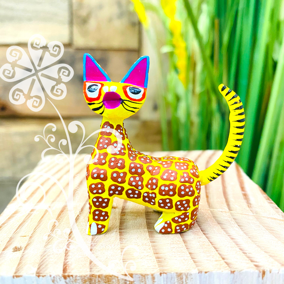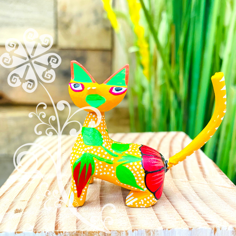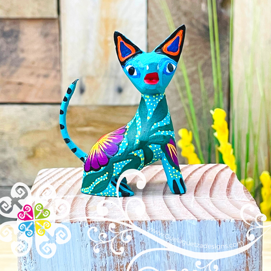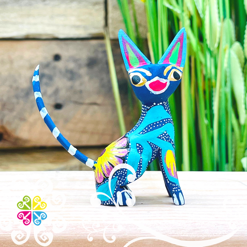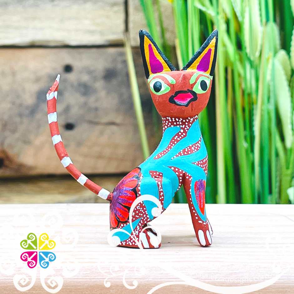 Mini Siamese Cat Alebrije Handcarve Wood Decoration Figure