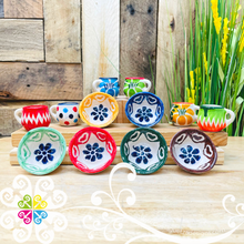 Each item is handmade and hand painted by artisans from Michoacan. All sets are assorted colors and designs.