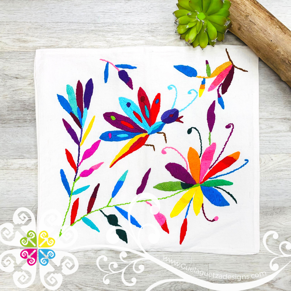 You will fall in love with this stunning hand embroidered pillow cases. Hand crafted by Mexican artisans from Tenango de Doria, Hidalgo, Mexico. Each piece features beautiful insects and flowers designs inspired by the Otomí culture.
