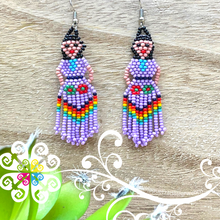 One of a kind earrings made with petite glass beads. Inspired on Mexican dolls. Each design uses different shapes and colors, featuring a vibrant rainbow palette or just plain colors.