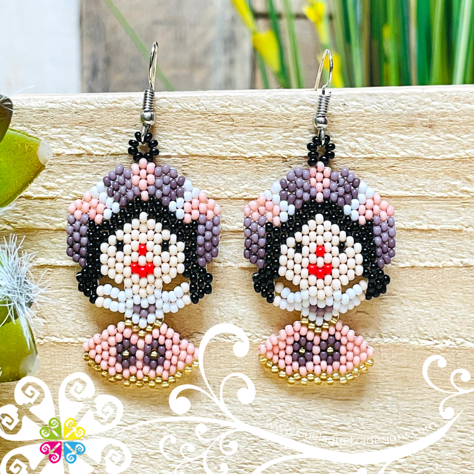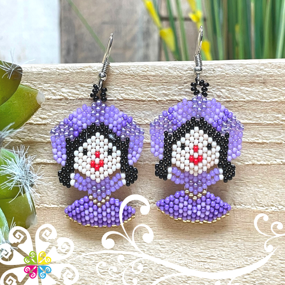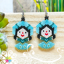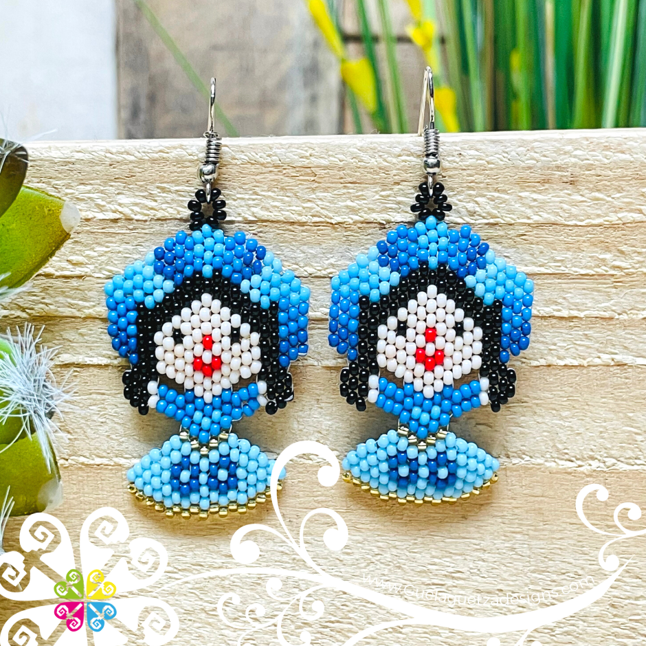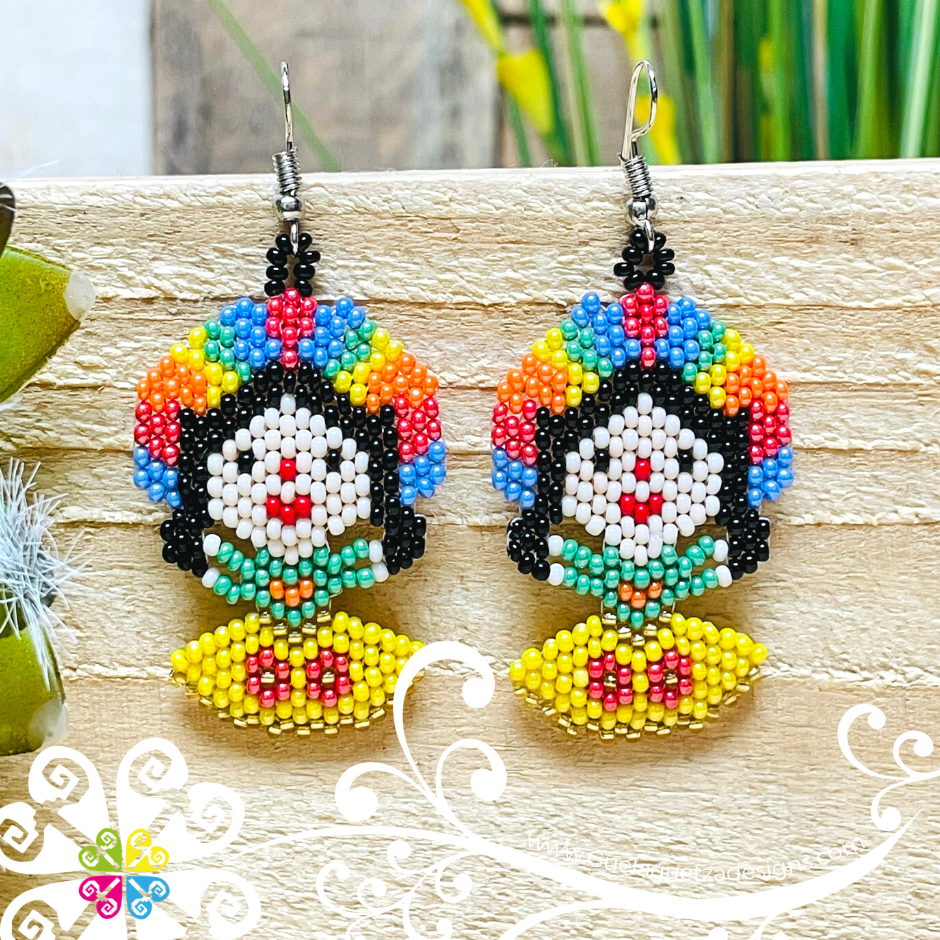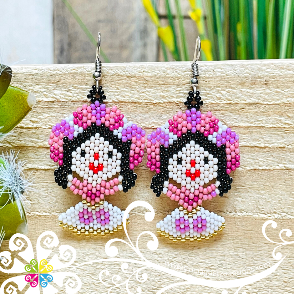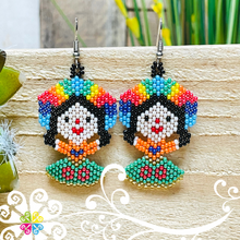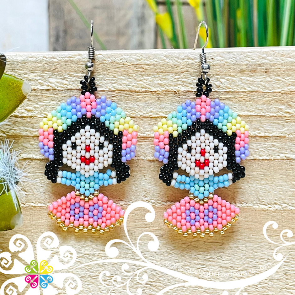 One of a kind earrings made with petite glass beads. Inspired on Mexican Otomi doll from Hidalgo. Each design uses different shapes and colors, featuring a vibrant rainbow palette or just plain colors.