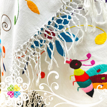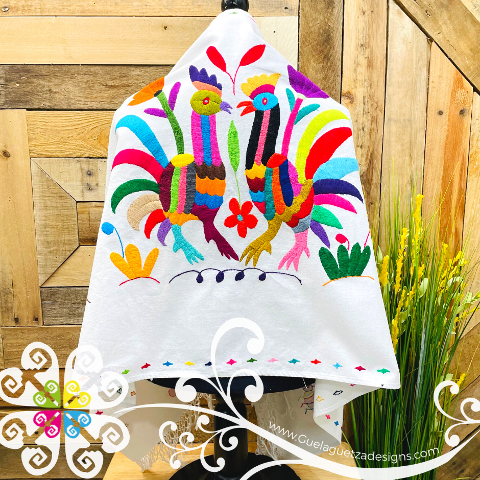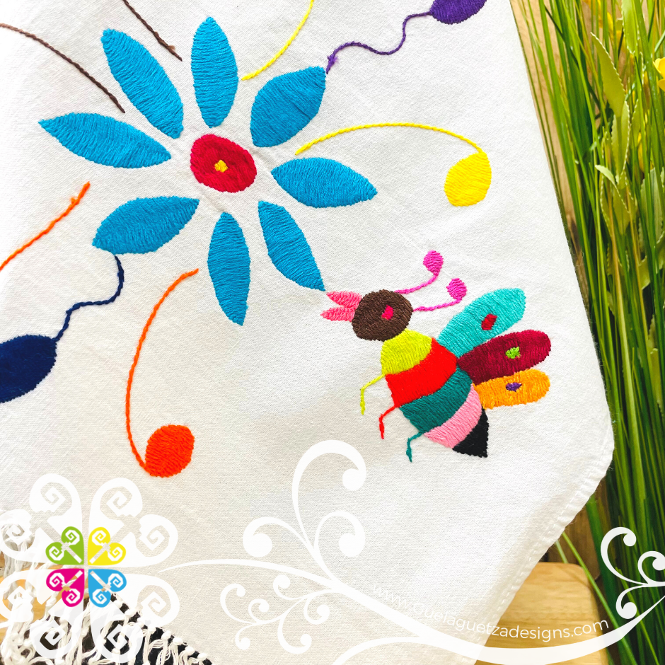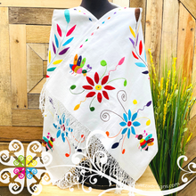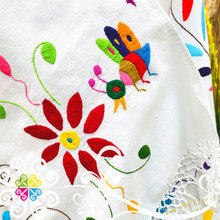 You will fall in love with this stunning hand embroidered scarf. Hand crafted by Mexican artisans from Hidalgo, Mexico. You will love every single detail of it! Made with white cotton fabric and colorful cotton threads.