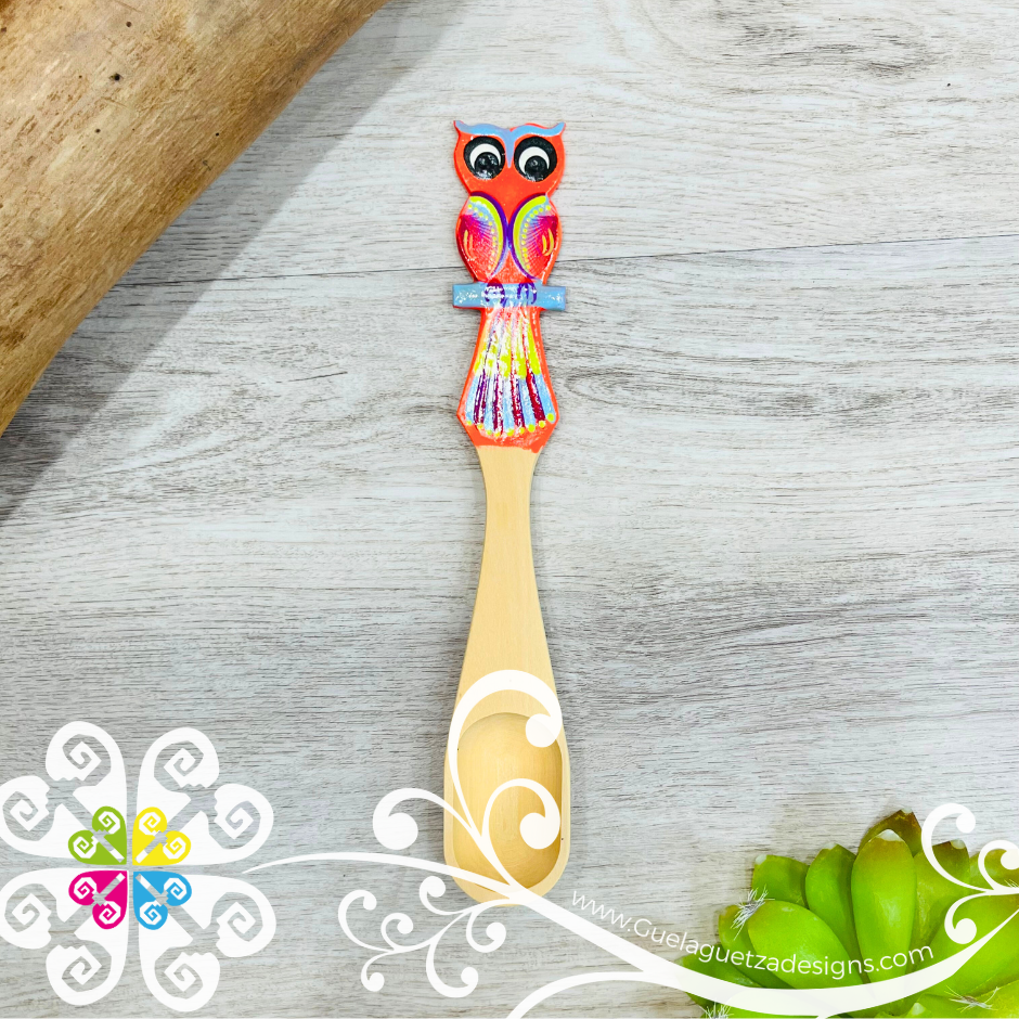 All spoons are hand carved using copal wood –the region’s own natural resource-, polished and hand painted with acrylic paints.