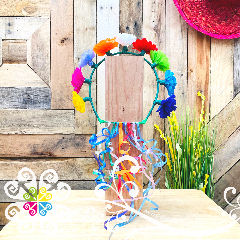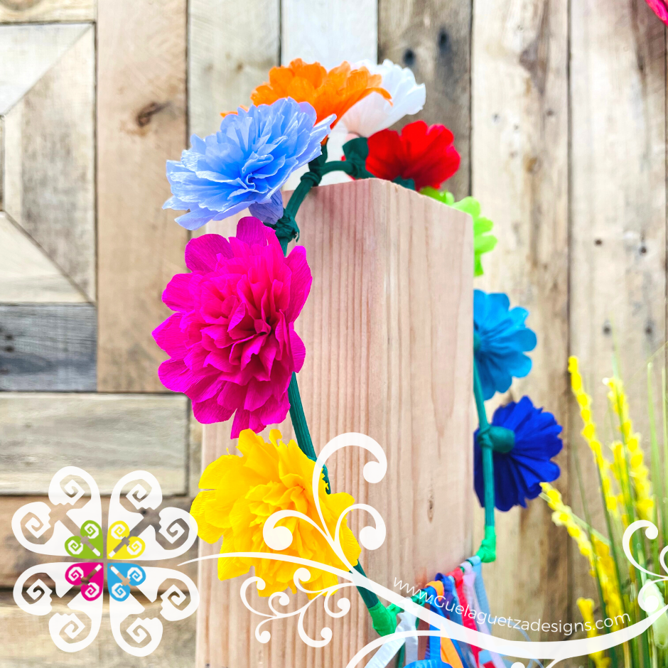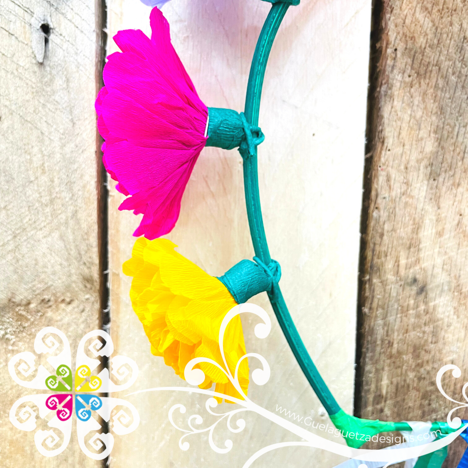 Beautiful headband made with paper flowers. Perfect for photo sessions, Cinco de Mayo, Coco themed party, Mexican party or just to look festive and authentic any day!