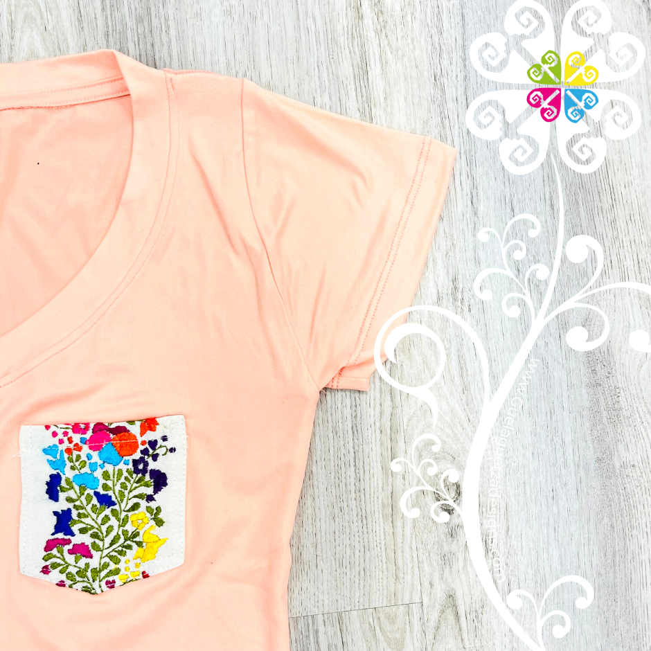 Pink/Beige Embroider Women Tee - Pocket Embroider