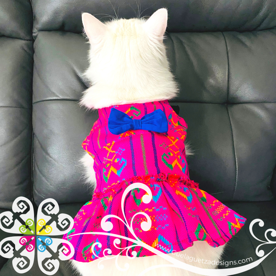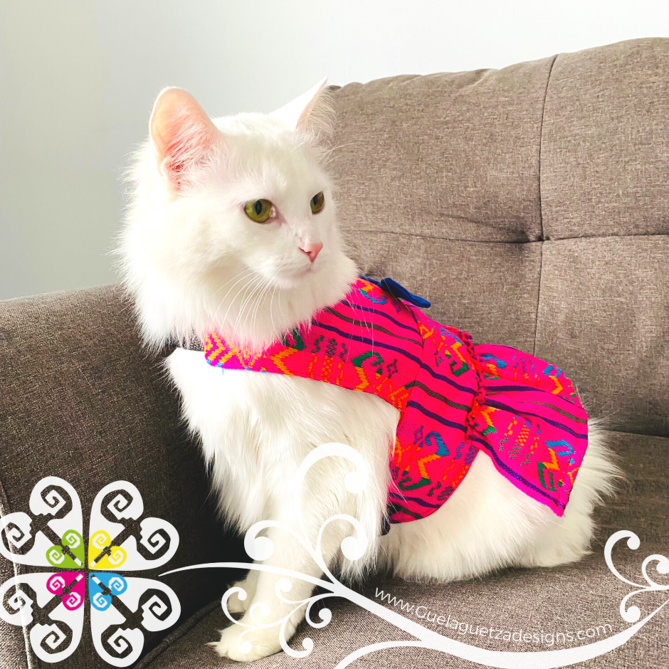 The most super cute cambray dress for your cat princess! You will absolutely love how your pet looks and represent part of the Mexican culture. Made with cambray fabric; a colorful and happy fabric. Snap buckle to adjust the neck and belly.