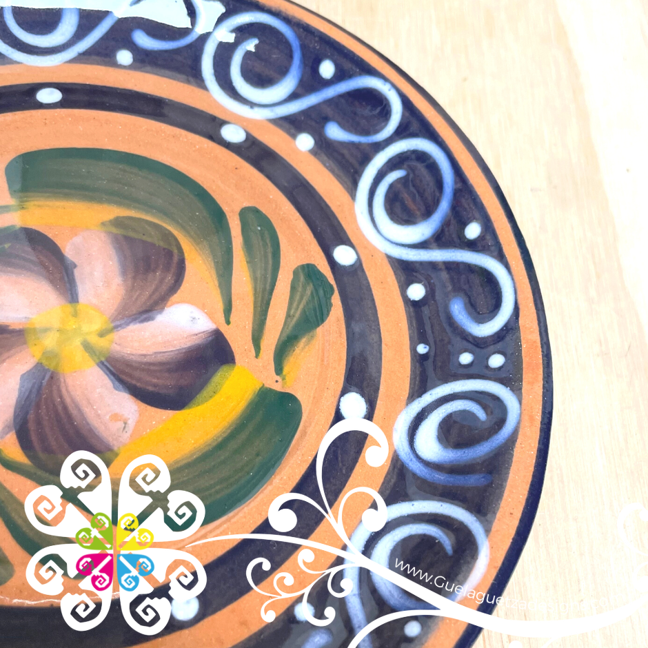 Beautiful clay plate created using ancient process by Mexican artisans from Michoacán, Mexico. Each design is crafted by hand, with love and passion. Perfect for decoration or safe to eat from.