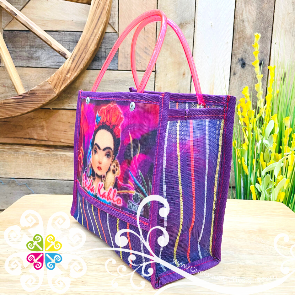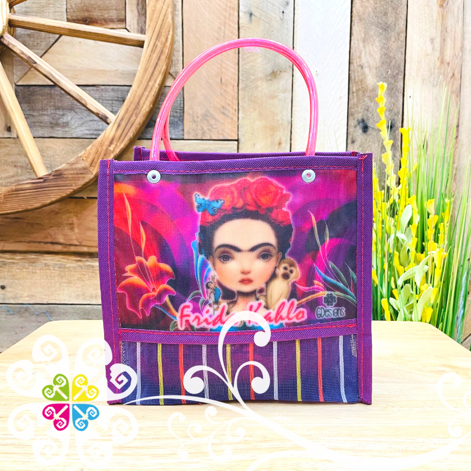 Inspired on great Frida Kahlo! Super cute morral made with mesh material, resistant and water proof! Perfect party favors, playdates for your girls, or to carry small objects everywhere.