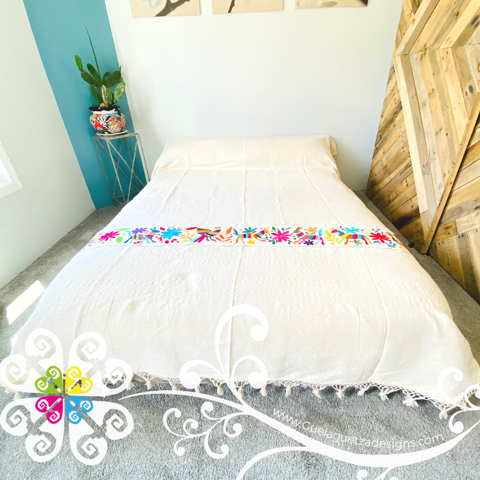 Queen Size - Pedal Loom Bed Cover with Otomi Runner