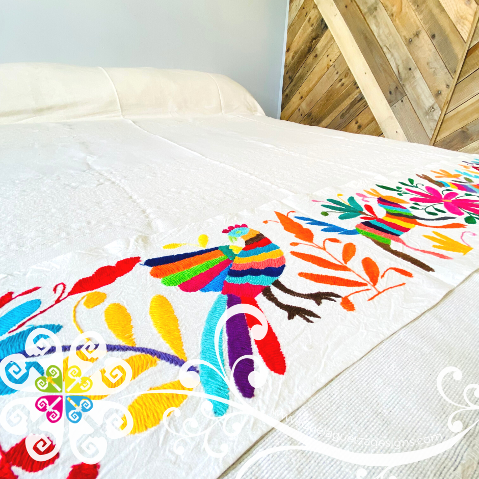 Set includes bed cover and removable Otomi runner.